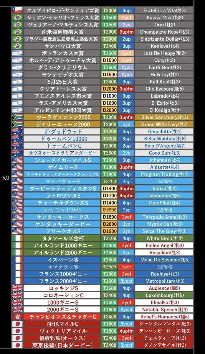 2024年5月の国際G1競走。欧州の2000ギニーや日米ダービーなど各国のクラシックが賑わうが、この年はどうしてもG1の降格に目が行く。 欧州ではサンタラリ賞、そして米国では何とマンノウォーSとハリウッドGCという、芝とダートの一大競走がそれぞれ降格してしまい、北米競馬に痛手となってしまった。 x.com/ukdhkRCXvQ9978…
