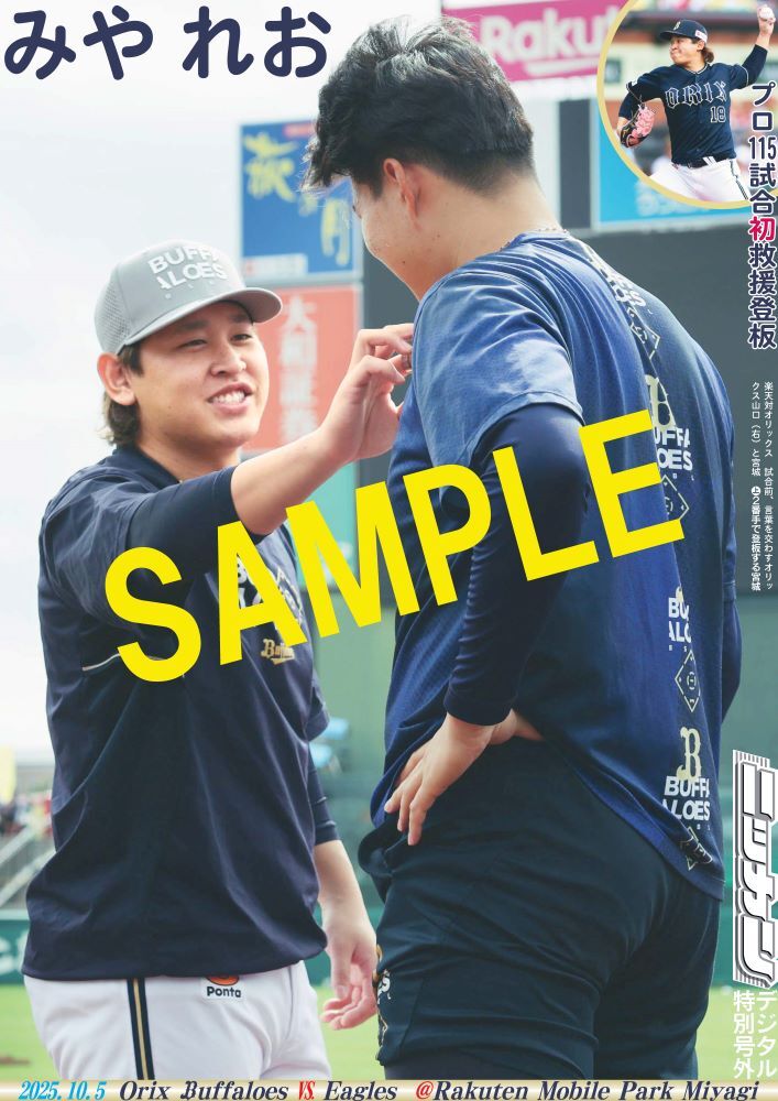 【#オリックス 更新🆕】 / #宮城大弥 投手が笑顔を向けたのはプロ初先発を控えた #山口廉王 投手⚾シーズン終盤にデビューした後輩の後を受けプロ初の救援登板でした🙌 \ 【商品番号NSD25A05】 特別号外をコンビニマルチコピー機で販売中🏪 A4光沢紙(ファミマ・ローソンのみ)A3の2種類選べて300円