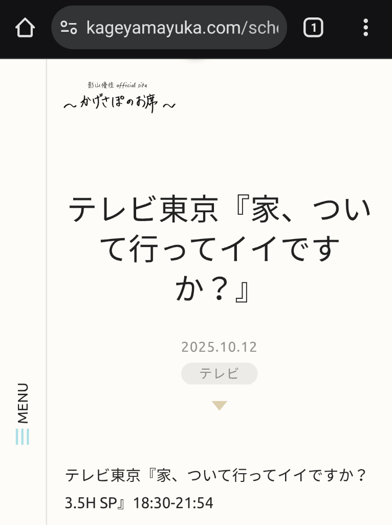 来週10/12の18時30分よりテレビ大阪系(テレビ東京)で放送の『家、ついて行ってイイですか?』に僕の大好き❤な影山優佳ちゃんが出演しますのでお見逃しなく🥲 家、ついて行ってイイですか? | テレ東・BSテレ東 7ch(公式) tv-tokyo.co.jp/home_ii/?cx_se…