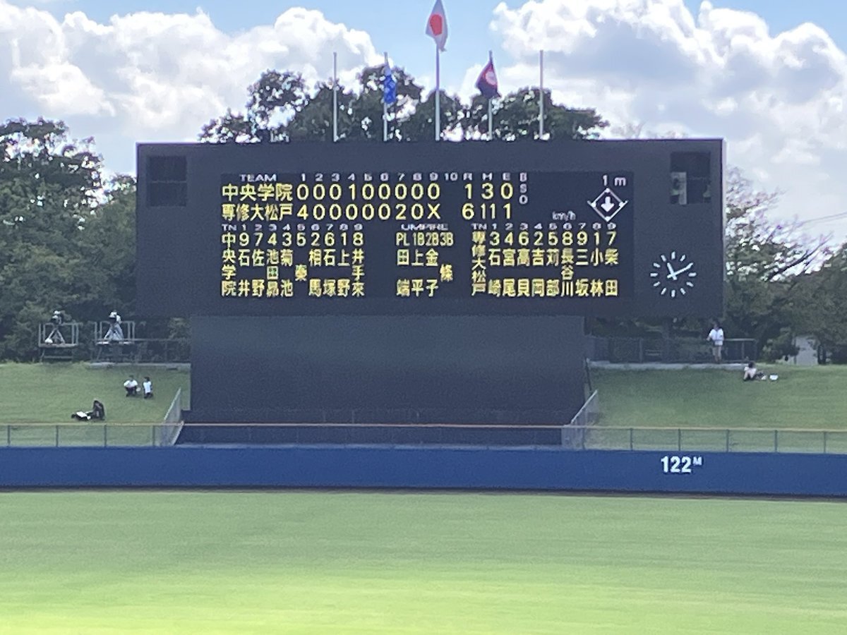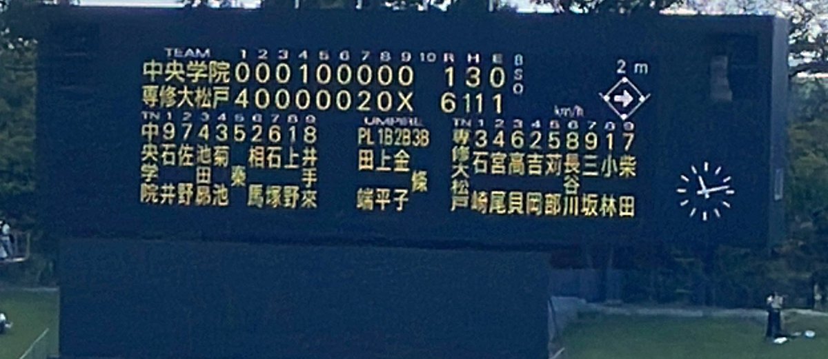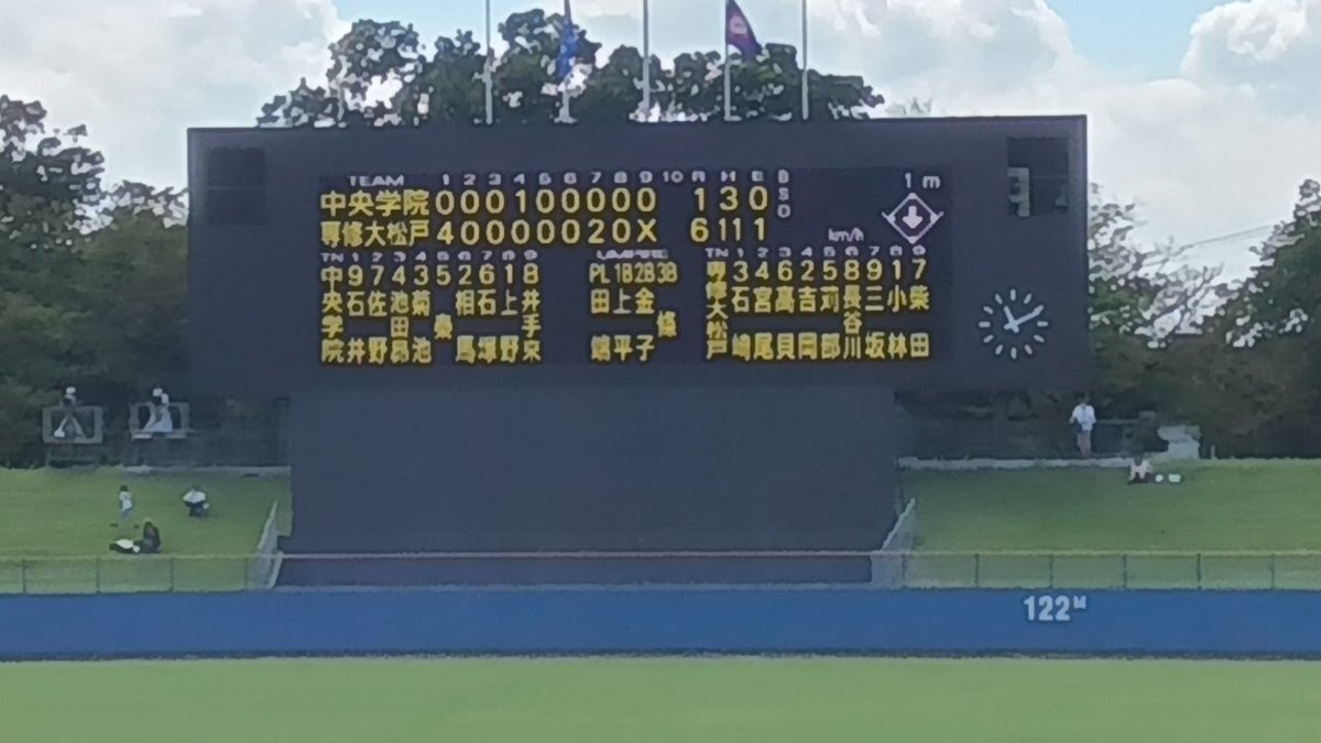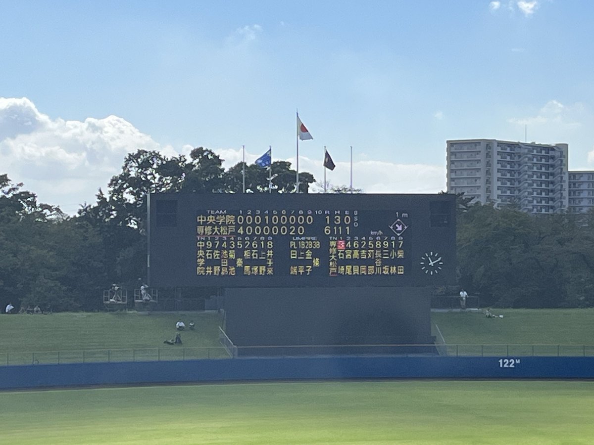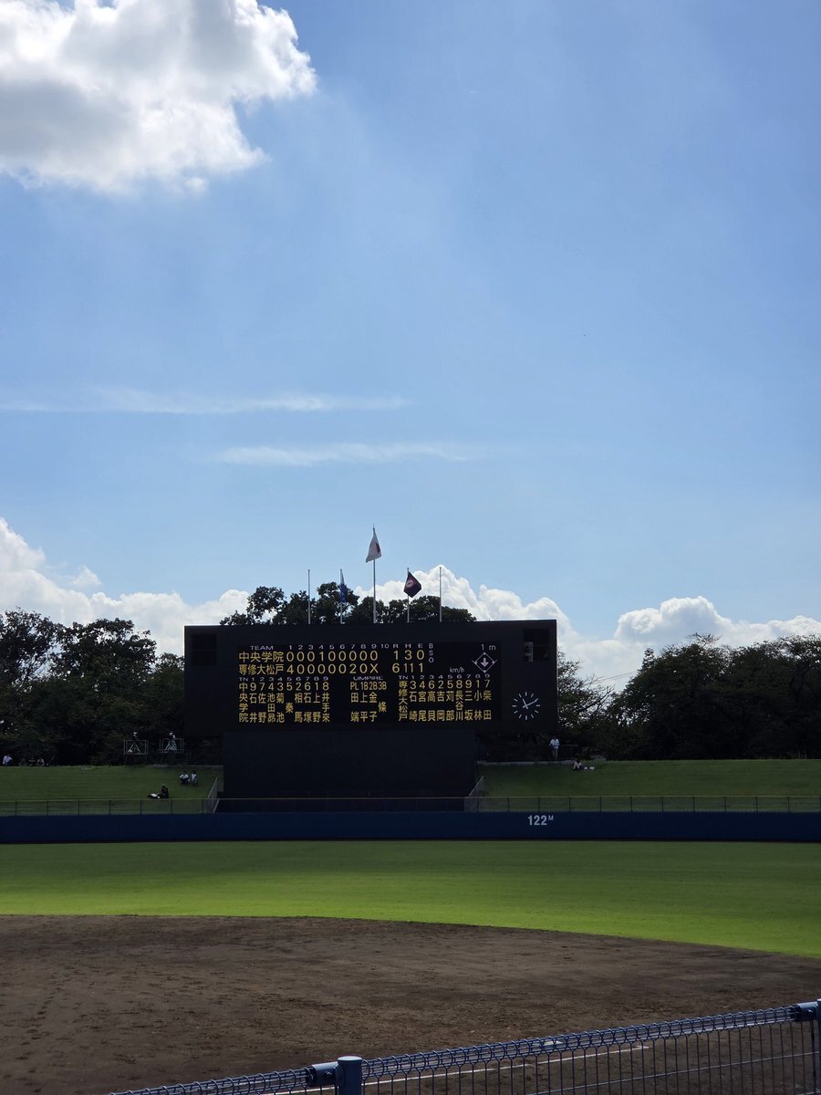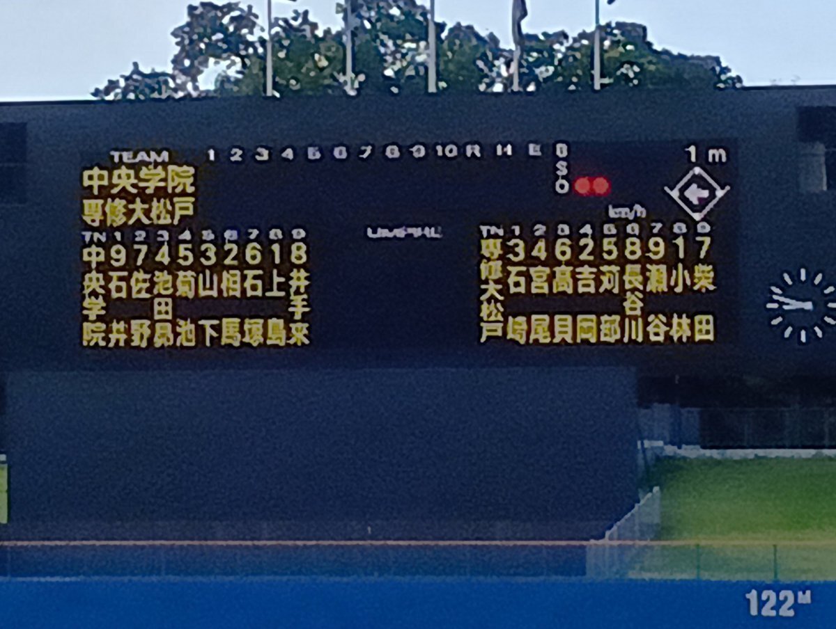 千葉県野球場 決勝は専松が1-6で中央学院に勝利!専松は強い。投手層、守備、攻撃、走塁とバランスのいいチーム。吉岡君は抑えるのが中々大変なバッター。関東大会も楽しみね。準優勝の中央学院も守備と走塁は高レベル。他チームからすれば間違いなく対戦したくないチーム。 pic.x.com/shpfcShVPB