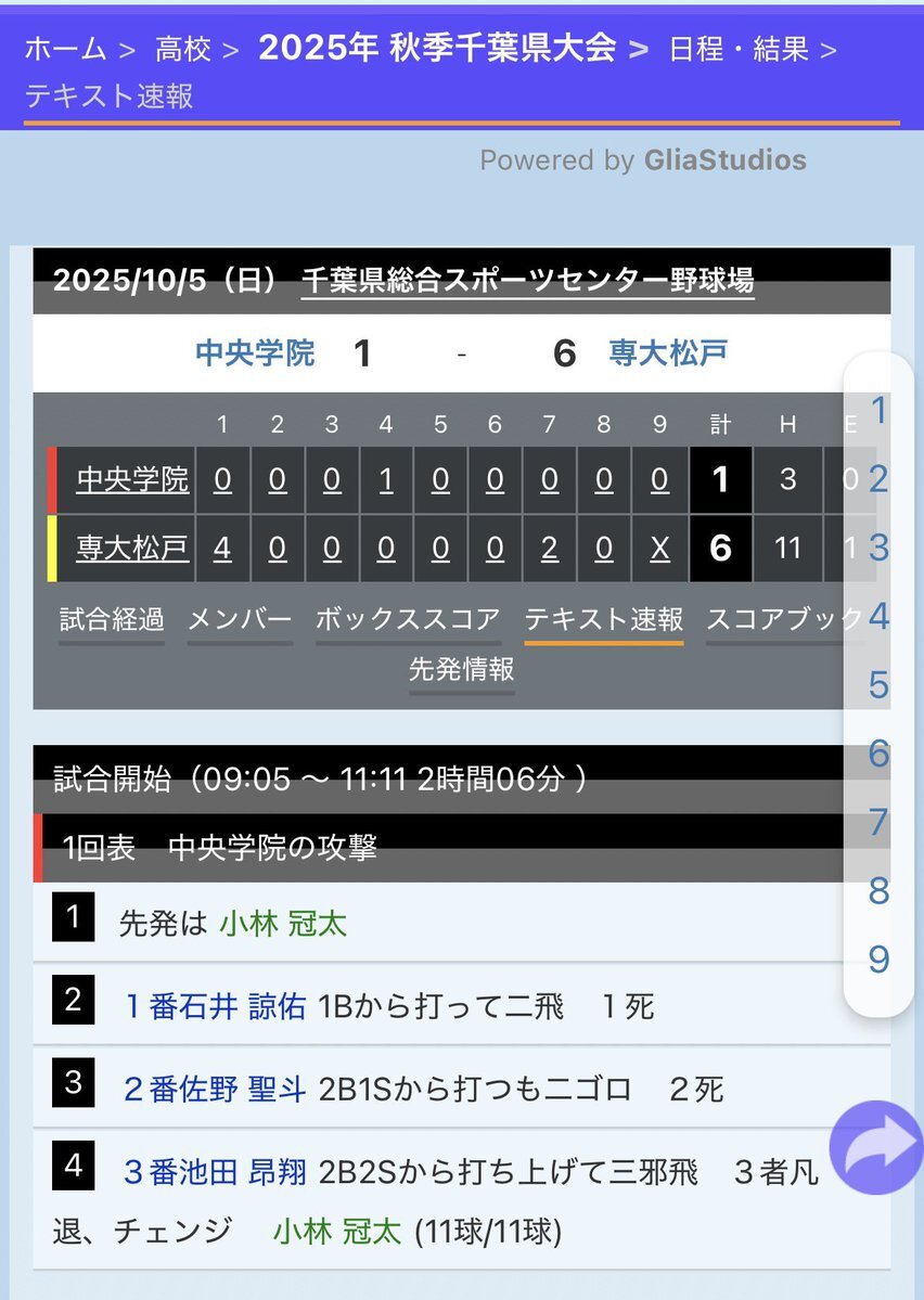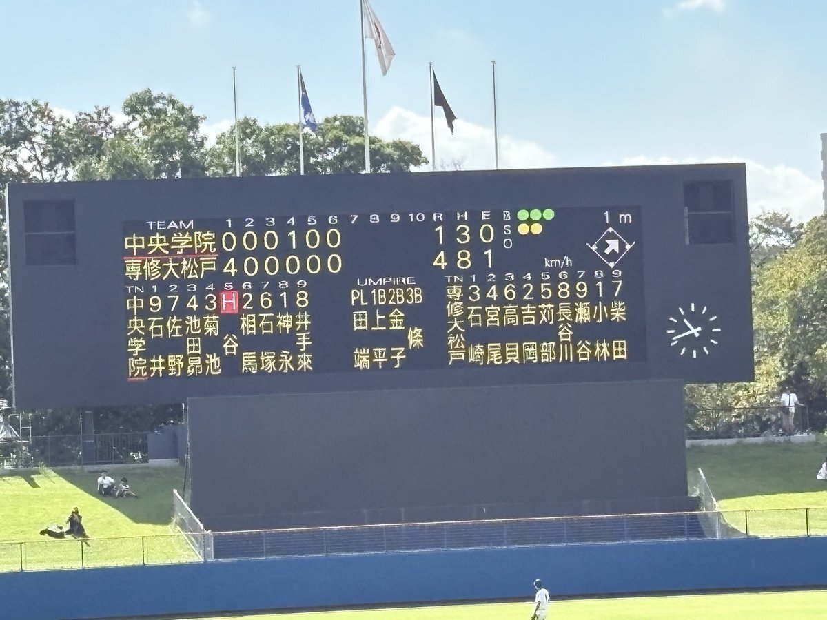 秋季高校野球・千葉大会 決勝戦 中央学院 1-6 専修大松戸 専松、強かったー!笑っ 両校とも関東大会勝ち上がってくれ! 実況、桑原さんだったし 黒木めいさんも観戦来てた! #千葉県高校野球秋季大会 pic.x.com/0YCBQtp9bn
