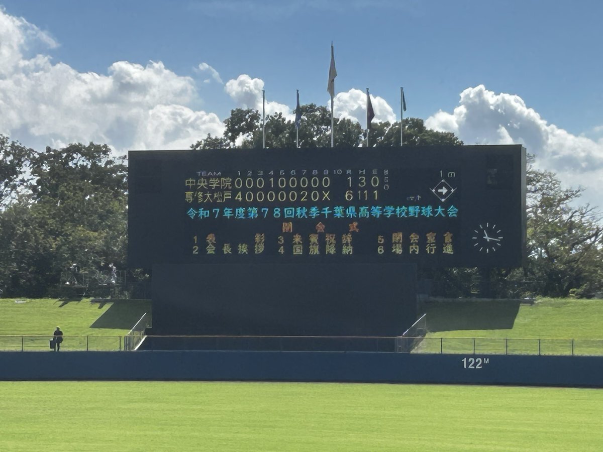 2025年秋季千葉県大会決勝 ⚫︎試合終了 中央学院 000 100 000= 1 400 000 20x=6 専大松戸 秋の頂点に立ったのは専松!!🏆 1年生小林投手が狙い球を絞らせず、大差で木総を破った中央学院打線を3安打に封じました。 中央学院と共に、秋関での活躍と選抜出場を祈念します! 優勝おめでとう👏🎊 pic.x.com/BvoozGmWw4