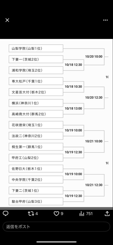 返信先:@konan_sagami777お疲れ様でした 同点に追いついた時は『流れは相模か?』と思ったら数時間後Xで見たら負けたので残念です うちも3-1で勝ってて9回裏に追いつかれて延長に突入し10回表点取れず裏の相手攻撃でサヨナラ負けを喰らい2位で関東となりました 初戦、徳栄・桐生一・専松・山学・横高とは当たりたくないです pic.x.com/eICLULWtl1