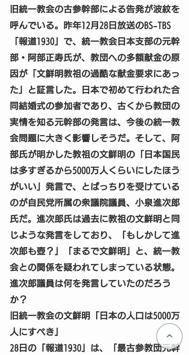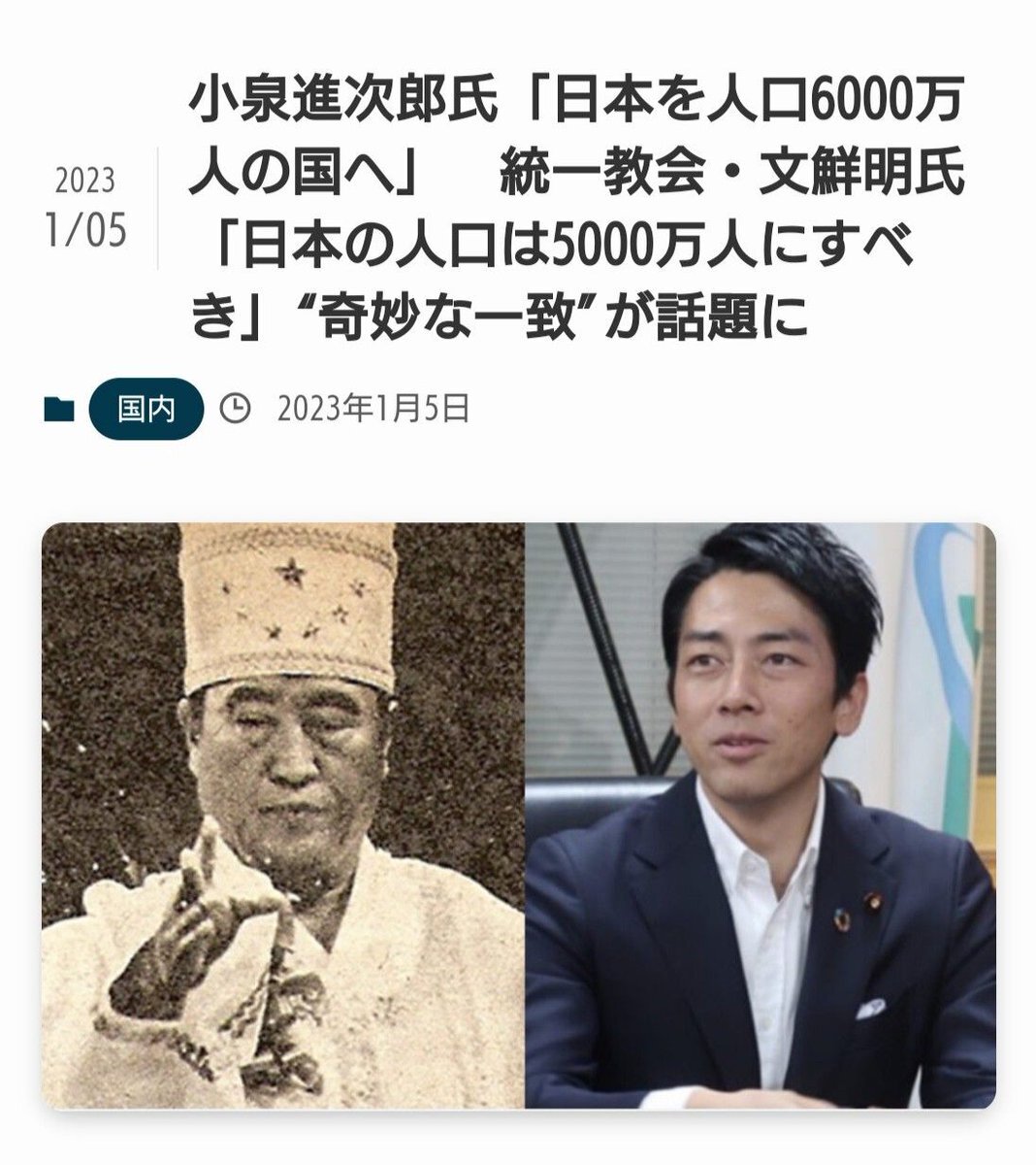 日本政府・自民党の基本方針 「日本人を1億二千万人から半分減らします。特に貧困層・奴隷層に消えてもらいます。」小泉進次郎・文鮮明 小泉進次郎氏「日本を人口6000万人の国へ」 統一教会・文鮮明氏「日本の人口は5000万人にすべき」 pic.x.com/HGwqL7fSdN