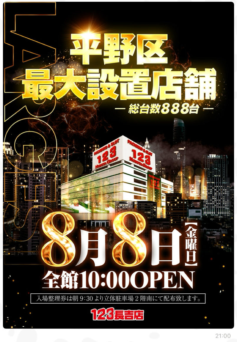 08/08 RESULT⚔🛡 . 大阪府大阪市平野区長吉出戸3丁目3番60号 123長吉 店 . →月と日が重なるゾロ目日 →初🎉ねくすとタオル⇨極ロング🔥 . 全台差枚約+7,240枚🔥 . 長吉エリアを代表する 店舗の8の付く日特定日 . 『ねくすとタオル』入荷にて 盛り上げていたぞ🌈 . x.gd/MFGD5 . x.com/kansai_result/…