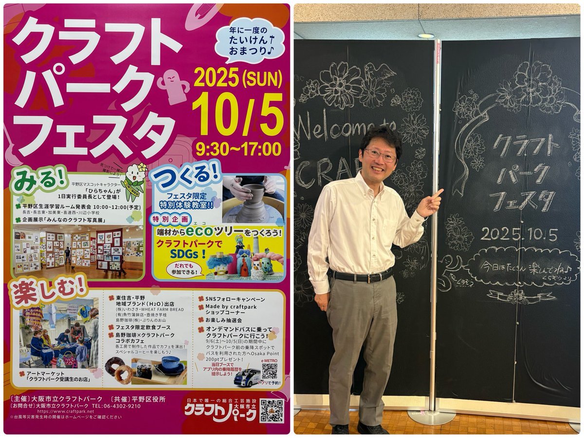 #クラフトパークフェスタ が本日(10/5)17:00まで開催されています。体験会や発表会など楽しい企画が盛りだくさん。あいにくの天気ですがぜひ。 #平野区 #藤村まさたか pic.x.com/ZFXGCoiRXD