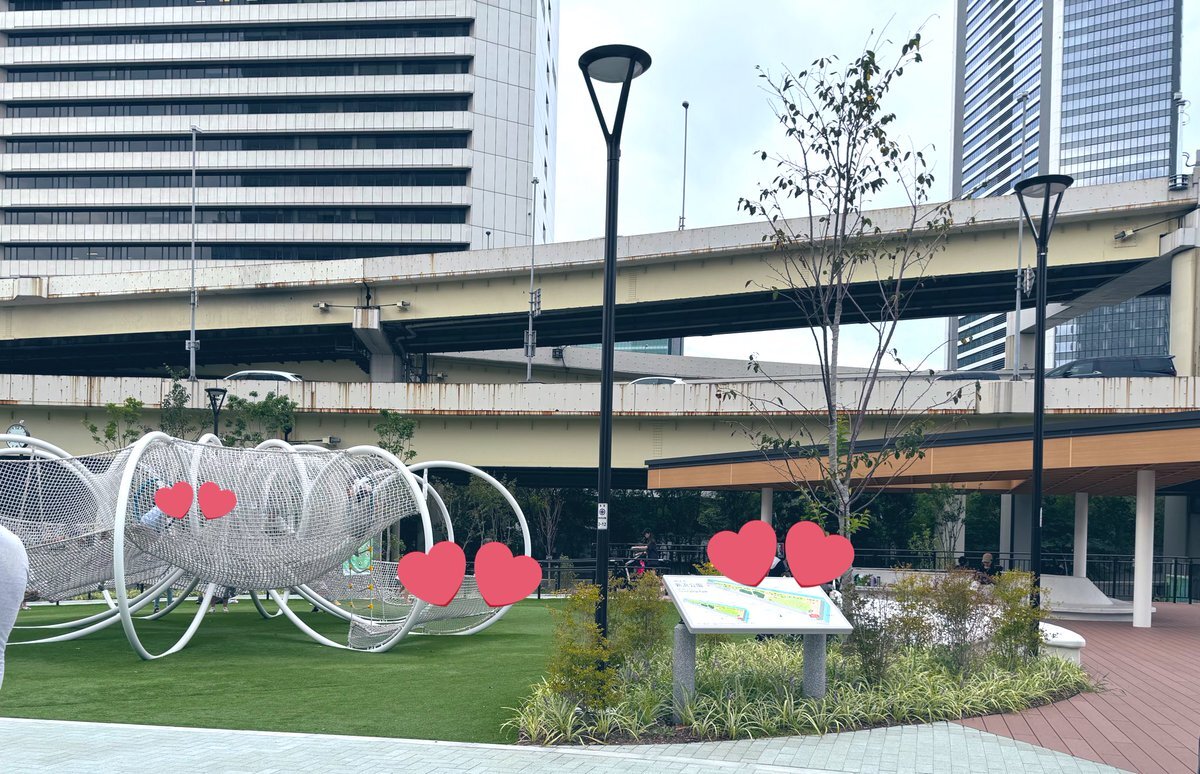ブルーフロントの隣には港区新浜公園🛝 ネット型遊具が新鮮😳🤍 ⚠️ただここもOMGのエリアが工事中で通行不可…😭😭😭 東芝浦橋からぐるっと回って〜!! この辺りは早く工事完了するといいですね🤔 pic.x.com/s3ako452Z0