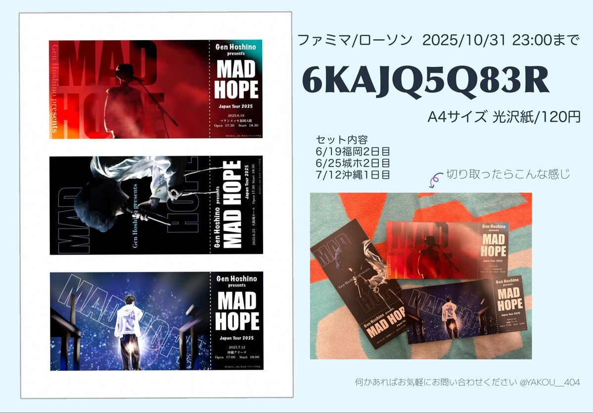 🌟ネップリのお知らせ🌟 全国のファミリーマート/ローソンで印刷できます!! 試しの第一弾 10/31まで 福岡2日目、城ホ2日目、沖縄1日目のレプリカチケットセットです。 メンションとかでご報告いただけたらとてもHappyになります🌷
