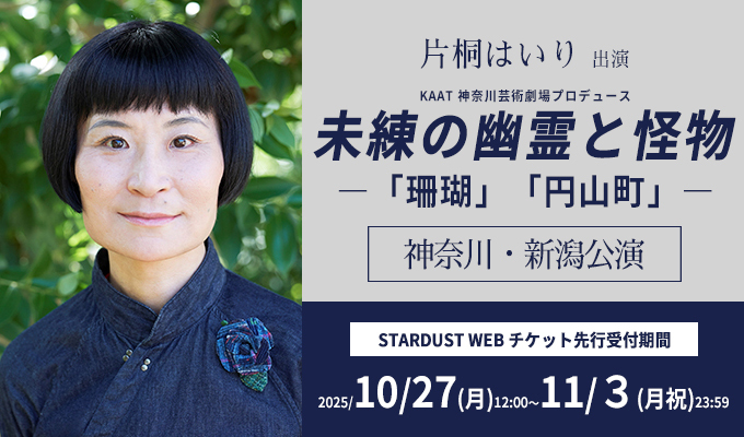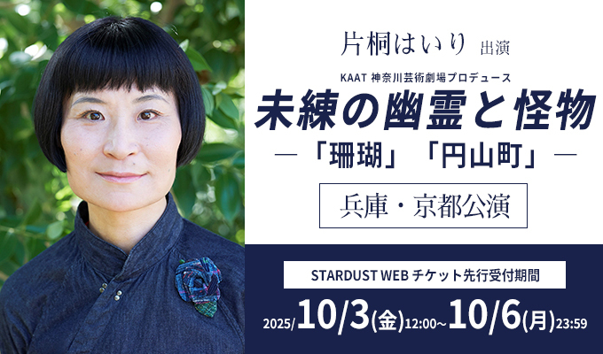 #STARDUSTWEB TICKET🎟️ / #片桐はいり 出演 『未練の幽霊と怪物―「珊瑚」「円山町」―』 兵庫・京都公演 チケット先行受付スタート📣 \ この機会をお見逃しなく✨ 【⚠️受付期間:~10/6(月)23:59まで】 詳細はコチラ👇 fc.stardust.co.jp/pc/ticket-pres… @hairikatagiri_s