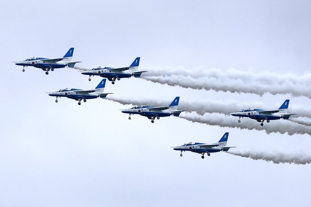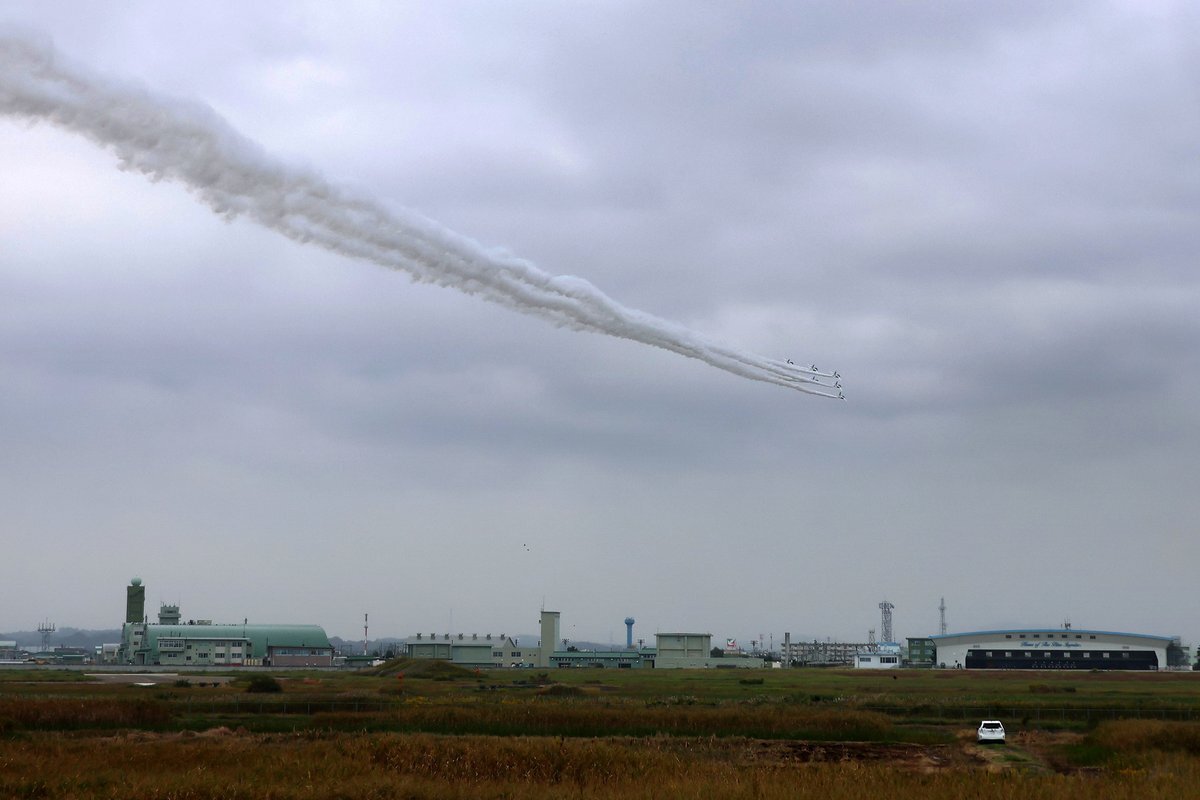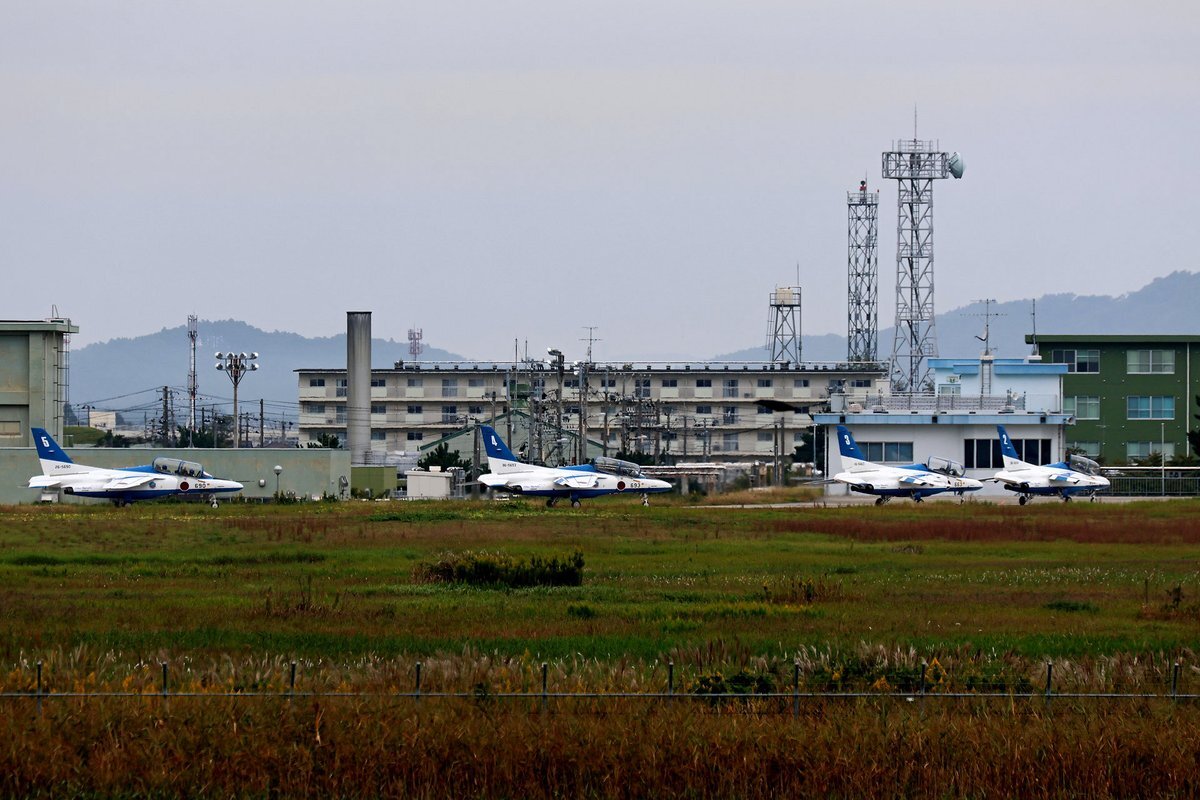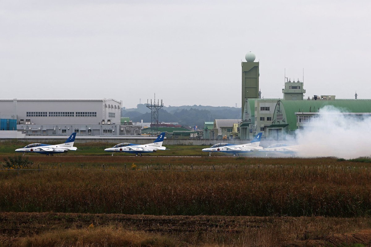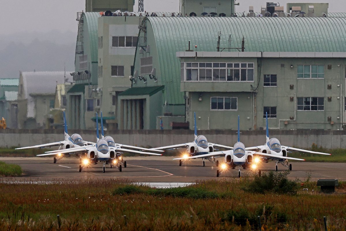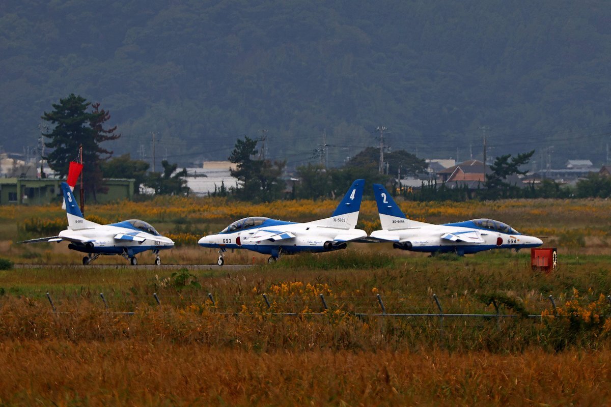 2025/10/16 #松島基地 #ブルーインパルス 1st、M+4洋上。(その1) メトロ離陸後に本隊4機がタクシーアウトするも、空域の天候悪くキャンセル、No.2まで行ってタクシーバック。 pic.x.com/Axnzr7nntr x.com/kenitch_rwy25/…