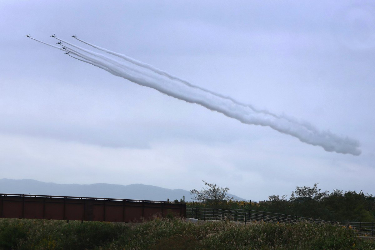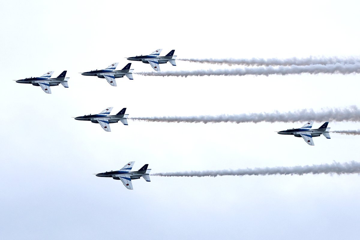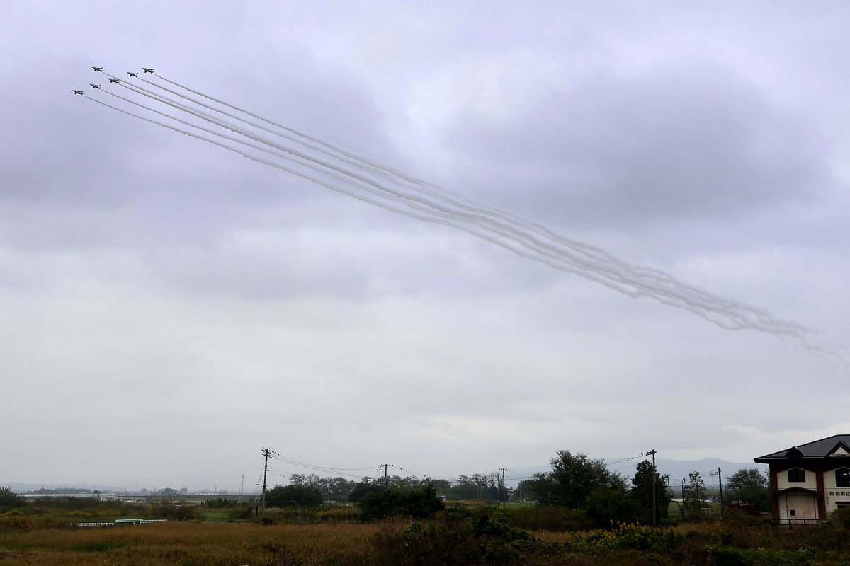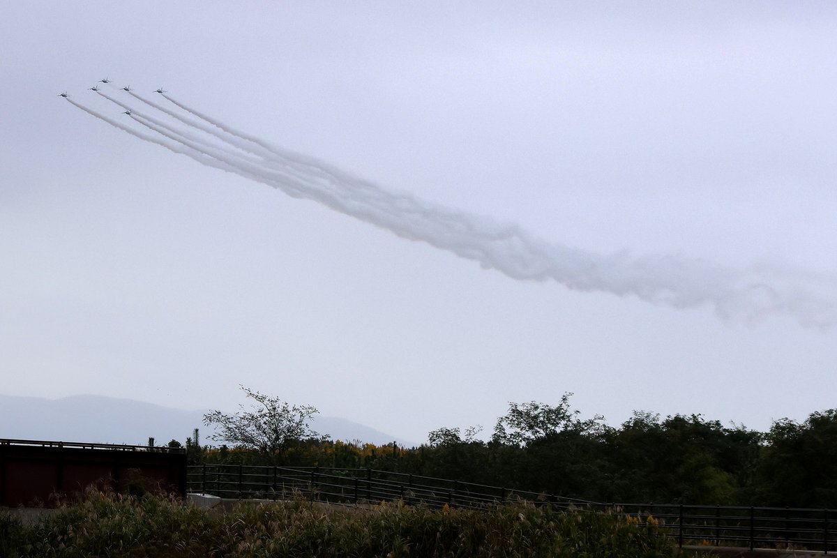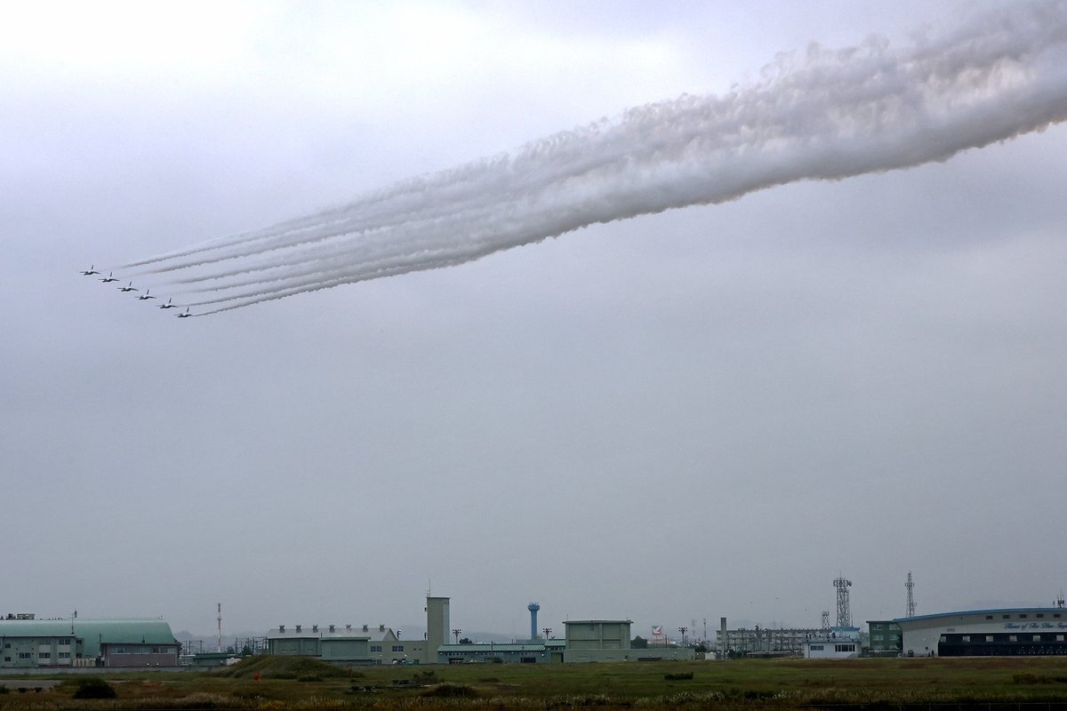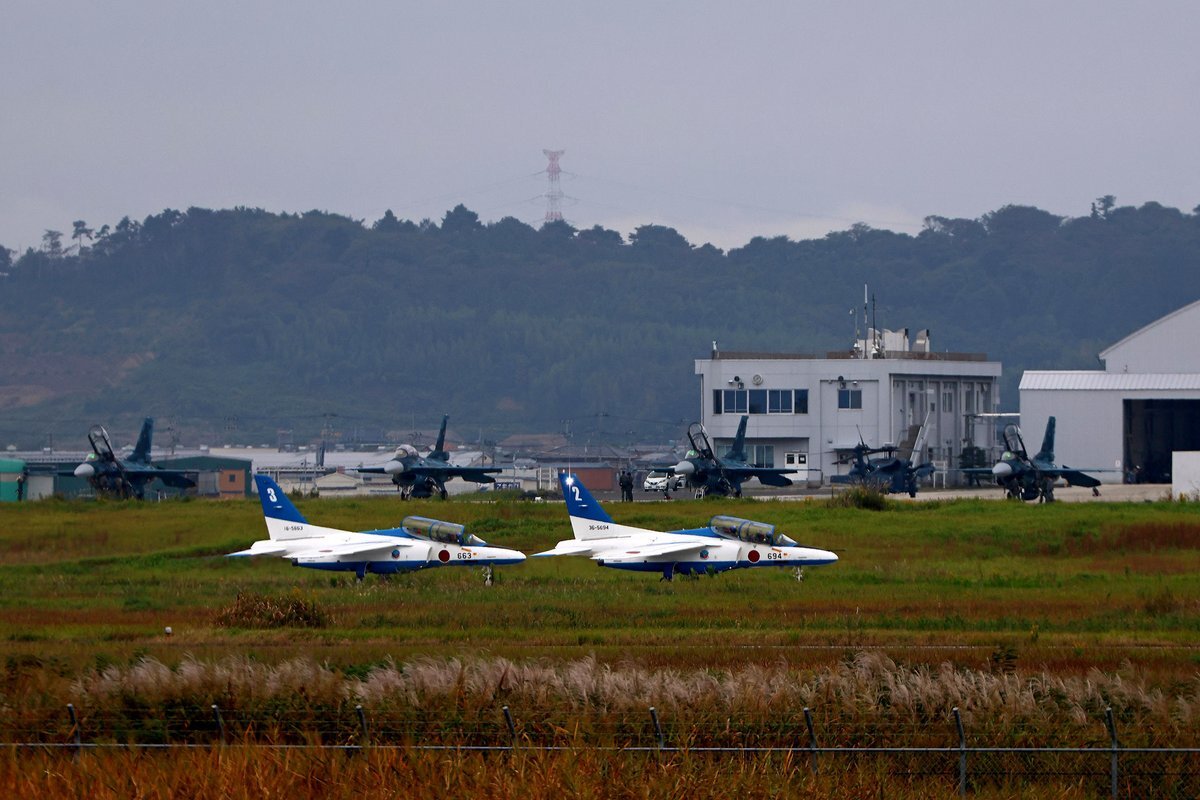 2025/10/16 #松島基地 #ブルーインパルス 1st、M+4洋上。(その1) メトロ離陸後に本隊4機がタクシーアウトするも、空域の天候悪くキャンセル、No.2まで行ってタクシーバック。 pic.x.com/Axnzr7nntr x.com/kenitch_rwy25/…
