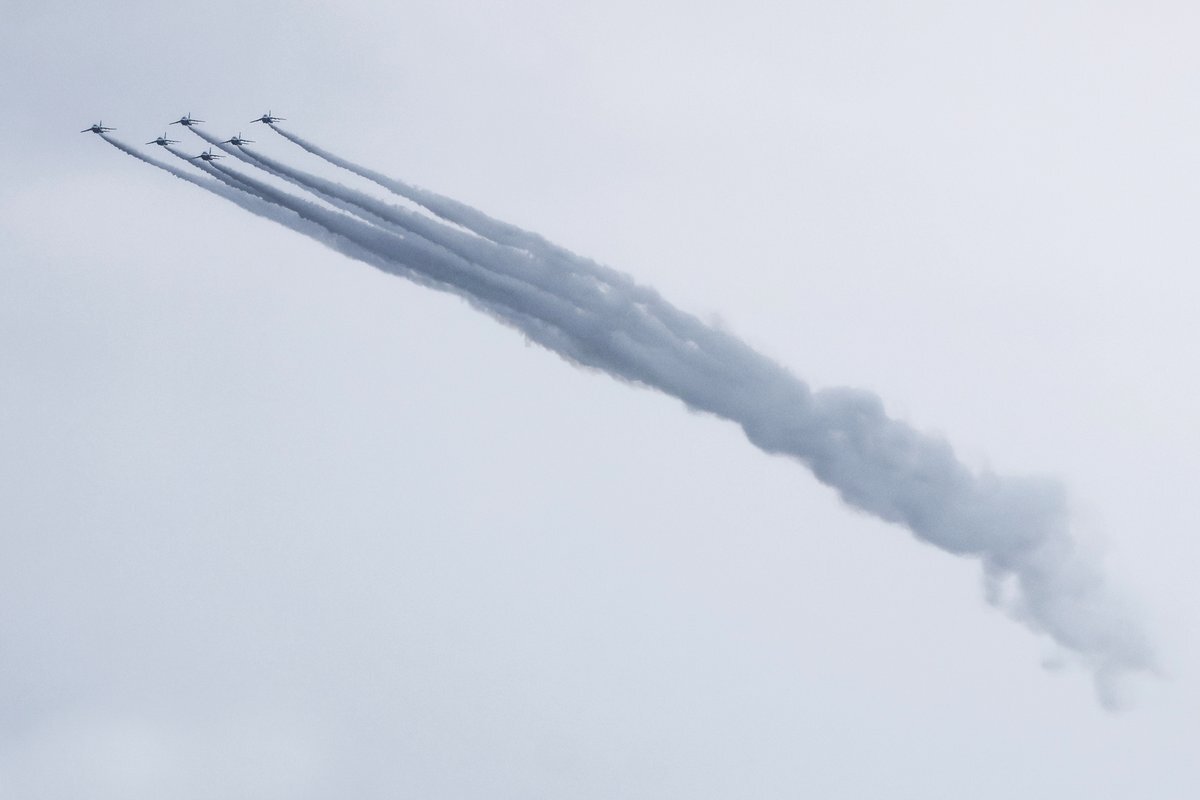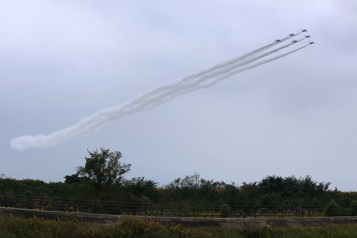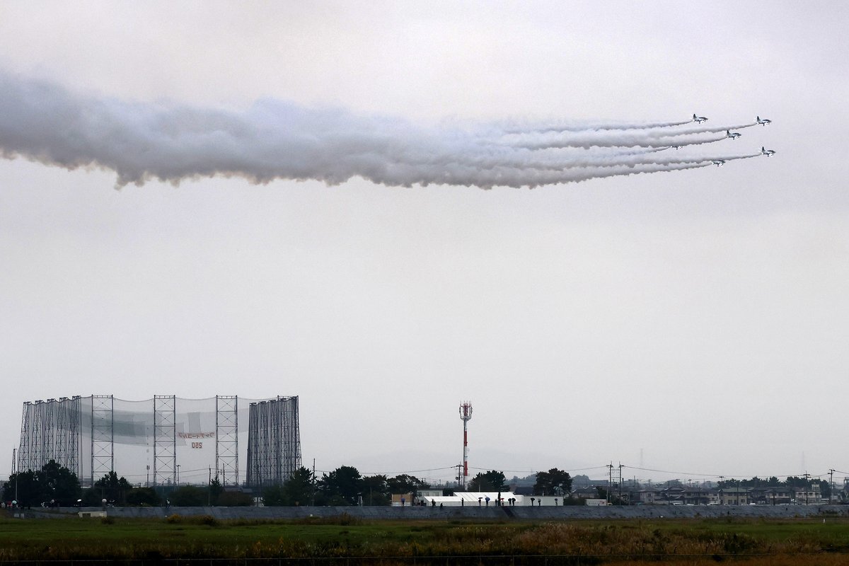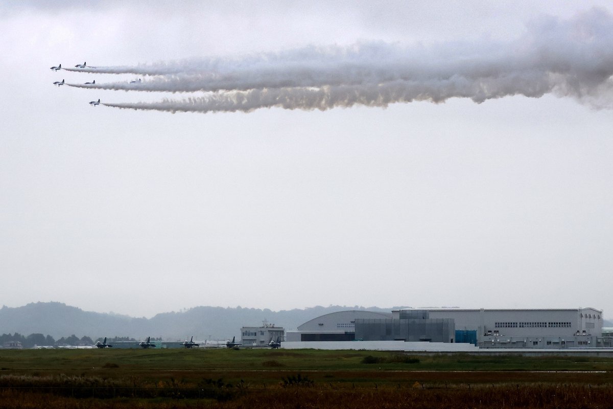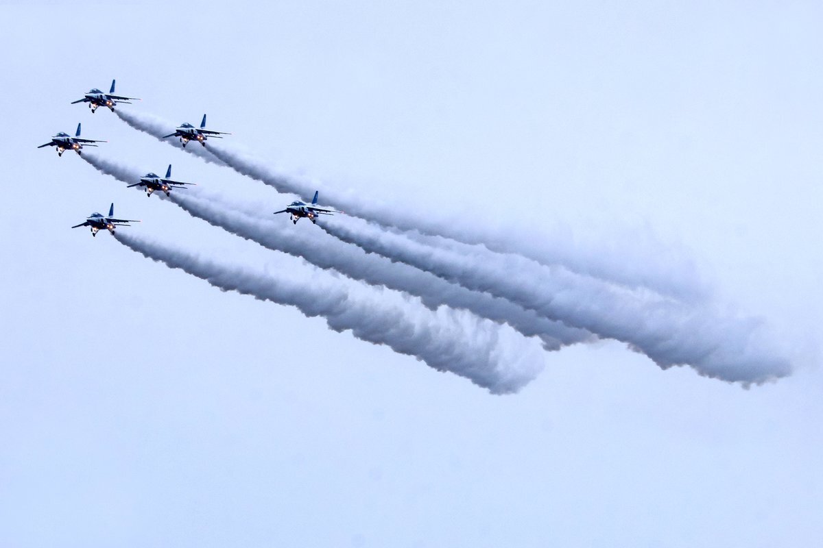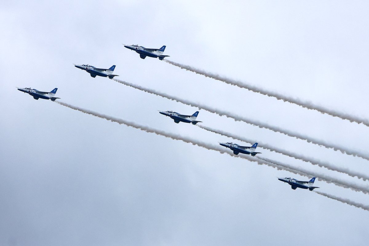 2025/10/16 #松島基地 #ブルーインパルス 1st、M+4洋上。(その1) メトロ離陸後に本隊4機がタクシーアウトするも、空域の天候悪くキャンセル、No.2まで行ってタクシーバック。 pic.x.com/Axnzr7nntr x.com/kenitch_rwy25/…