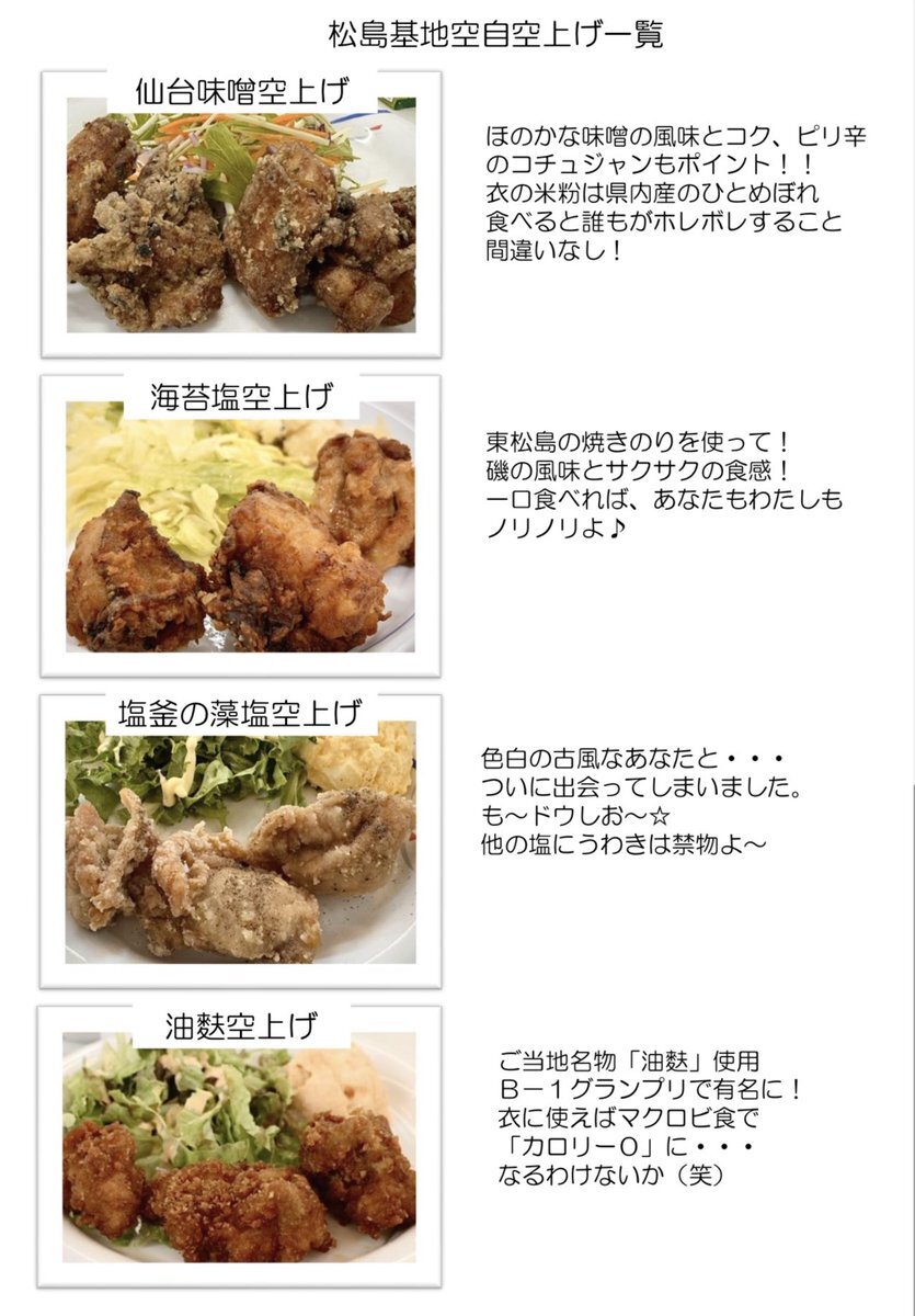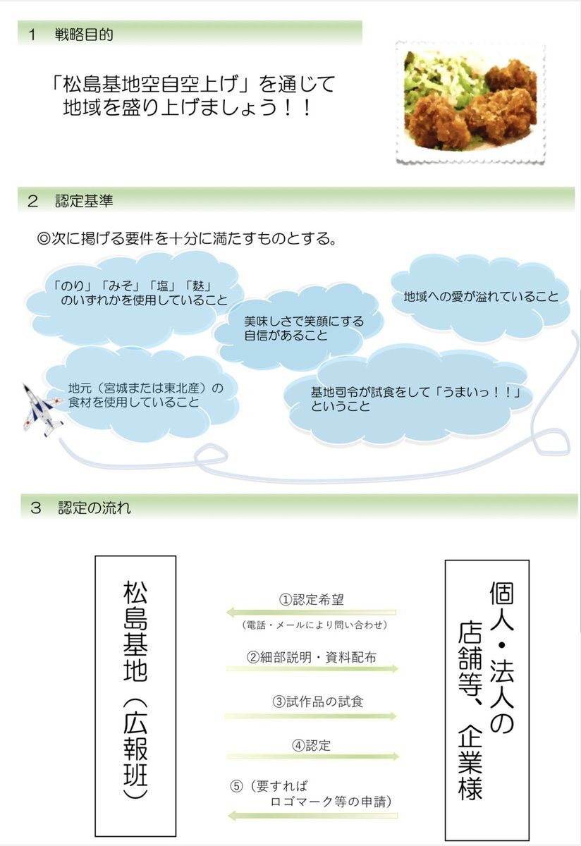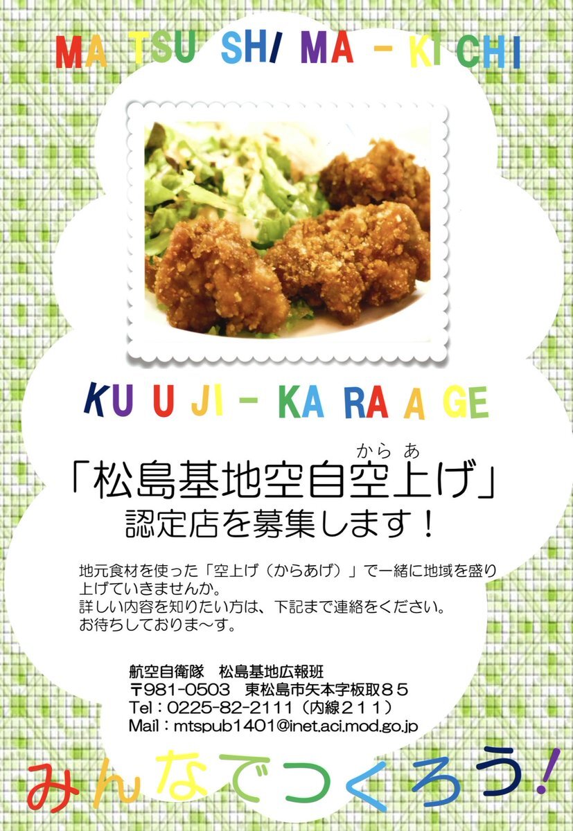 🍗「松島基地空自空上げ」認定店を大募集!🍗 地元食材を使用した空上げを作って❣️食べて❣️地域を盛り上げましょう♪ ご興味のある方は下記リンクへ👇 mod.go.jp/asdf/matsushim… #航空自衛隊 #松島基地 #空自空上げ #のり #塩 #みそ #麩 pic.x.com/RF6qzBZUS9