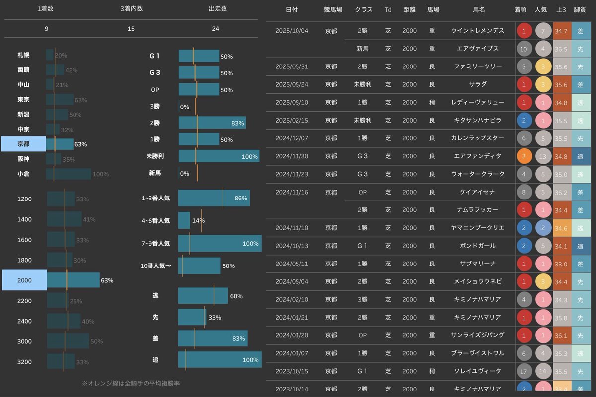 おはようございます☁️ 武豊騎手×京都芝2000m 複勝率 (2023〜2025年実績) ・複勝率63%で騎手平均以上 ・重賞クラスでも複勝率50%越え ・人気問わず馬券圏内が期待できる これは秋華賞が楽しみですね! 今日もよろしくお願いします😊 pic.x.com/iSXMUdi5SF