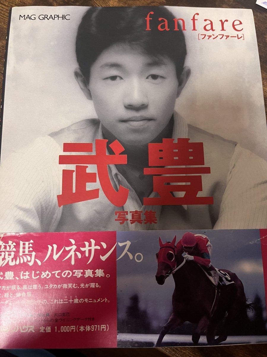 これはかのレジェンド武豊が汚点と称したはじめての写真集なんですが、レース中のかっこいい写真の間に明らかに女の子向けのページがあって読んでて自分まで恥ずかしくなります。ファン、必見 #武豊 pic.x.com/Wm1hpYfO5e