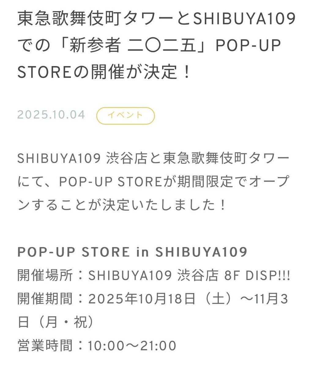 #櫻坂46 #櫻坂四期生 #新参者 #渋谷109 #新参者 二〇二五 POP-UP STORE in SHIBUYA109 SOLD OUTしてるものもあるけれど、こっちはまだまだ残ってます 10/19 13:30現在 pic.x.com/95Y7V8bvfe x.com/SHIBUYA109NET/…