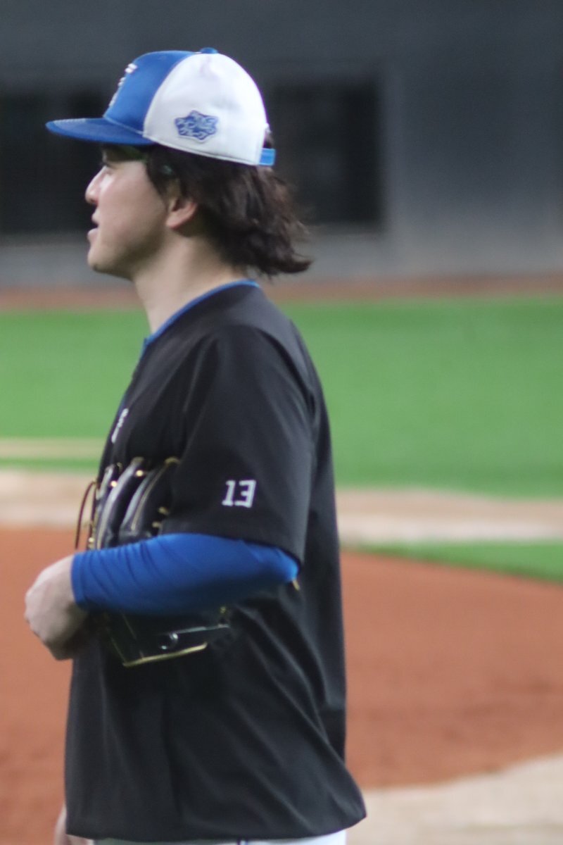なばさんのストライクポーズは👍で金村くんが球審の時より判定辛くてあまりストライクなかった印象😂 ボールの時は3枚目😂 けっこう長くやってましたこれ😂 ピッチャーは河野くん☺ 20251106 #生田目翼 #金村尚真 #lovefighters pic.x.com/I8NUOEkTp4