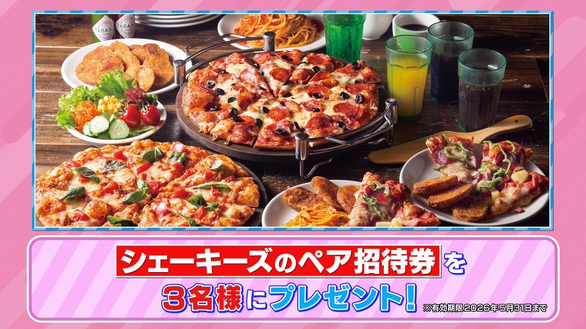 🐰ラヴィット!プレゼント🎁 『ぼる塾の食べ放題満喫部』で紹介した 「シェーキーズのペア招待券」を3名様にプレゼント🍕🥤 〈参加方法〉 ①アカウントをフォロー ② #ママタルト 発表キーワードと #ラヴィット をつけてこの投稿を引用リポスト 締切は本日10/6まで🍀