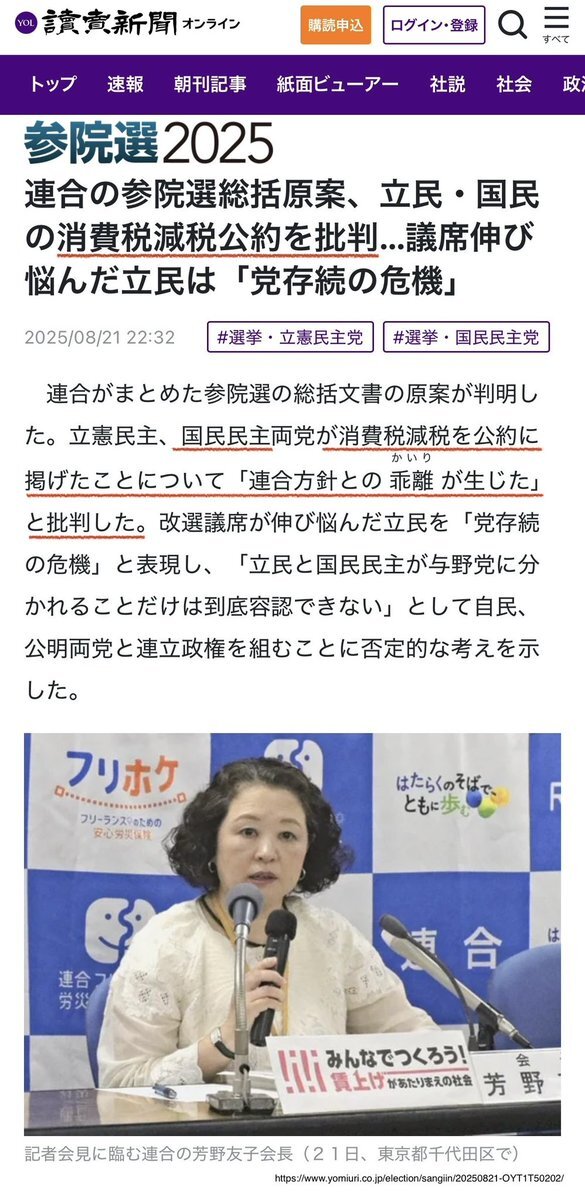 連合会長の芳野さんが消費減税に反対して、その上さらに外国人共生などと言ってるから、多くの日本人が苦しんでいる 国民投票で選ばれていない人が、なんで政治を左右するような権力を握っているの? おかしいと思いません? x.com/inagakisamurai…