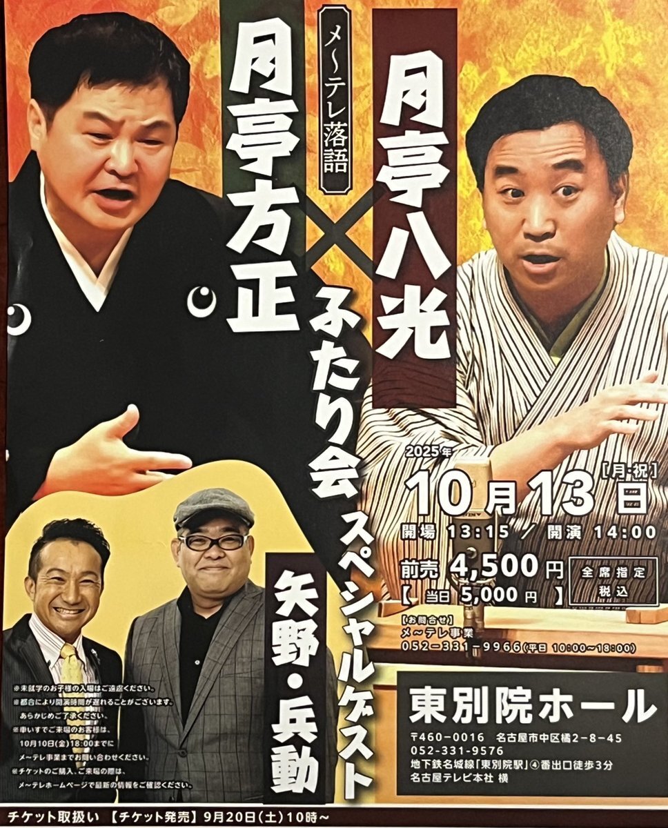 『 月亭方正 × 月亭八光 ふたり会』 スペシャルゲスト:矢野・兵動 聴いてみたかった落語家さんの会 タレントにイメージが強いけど 方正さんの子どもを演じるのが上手い あどけない感じがいいね! 充実した時間でした もっといろんな落語家さんを聴いてみたい #月亭方正 #月亭八光 pic.x.com/0vCAzziIGc