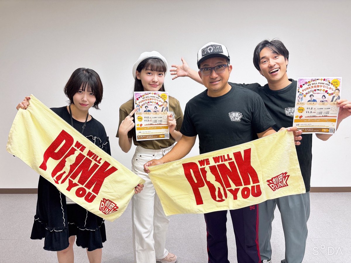 【チケット販売開始しました!!】 WE WILL PUNK YOU 2025秋 〜PUNK文化祭やで!しかし!!〜 theater-seven.com/ev/ev_s251102.… 今回もショート芝居3本立て! 「文化の日」にあわせて11/2(日)&11/3(月祝)に開催!! 出演:#劇団PUNK 選抜メンバー #矢野勝也(#矢野・兵動)#横堀菜々美 #土井隆 #彩葉 pic.x.com/IGcSnwM5H1
