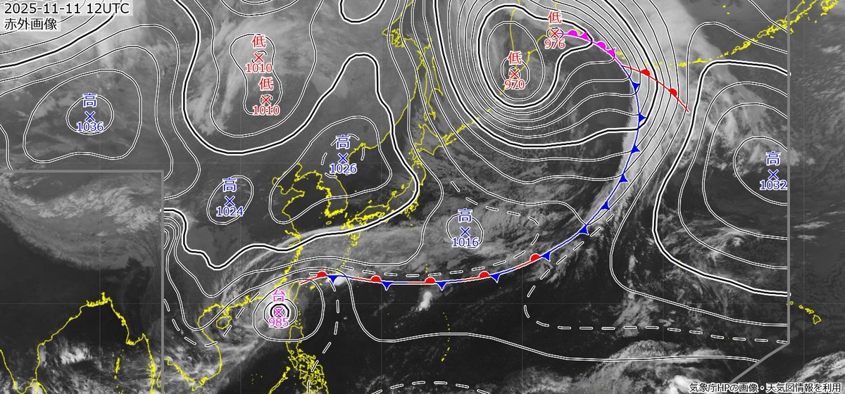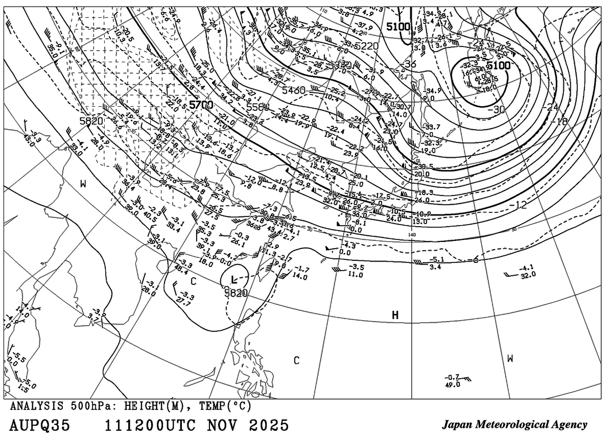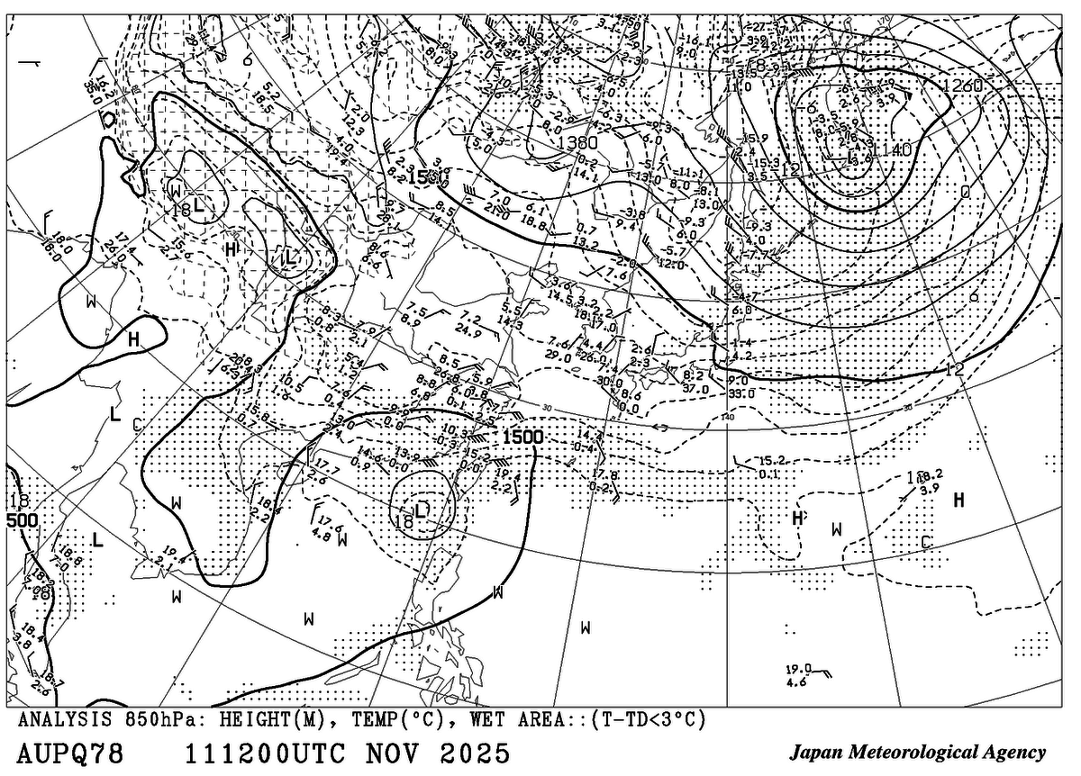 11日21時の上空の気温℃と前日比 500hPa(中層) 850hPa(下層) 稚内-33.7 -1.6 -9.3 -1.4 秋田-30.5 -4.8 -4.7 ±0 ↑↑↓↓↓↓中層・下層ともにまちまちの動き 館野 -18.3 +0.4 1.4 -2.0 八丈島 -10.9 -0.2 9.0 +4.0 鹿児島-8.1 +0.6 8.6 -5.0 石垣島-1.7 +1.6 19.4 +2.6 pic.x.com/6IkMj7H2uI