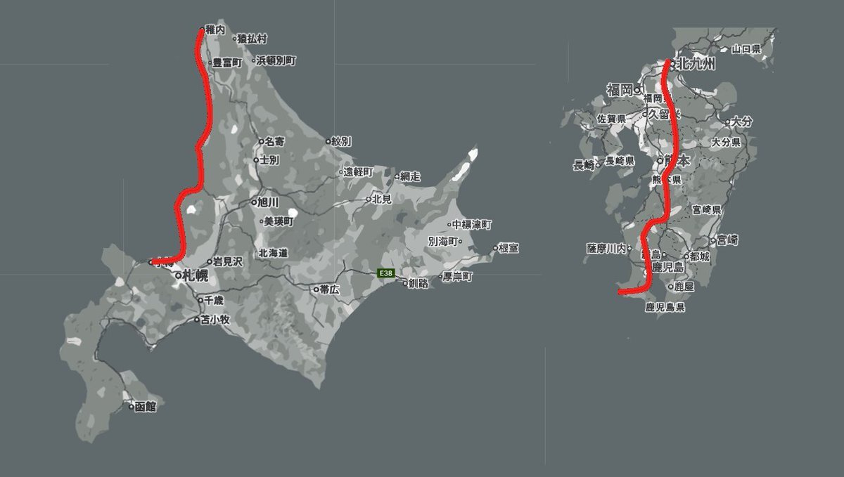 The True Size Of...で測ってみたらー 小樽ー稚内の距離が九州では北九州ー指宿くらいの距離 まぁ走れちゃうんじゃないのーくらいの距離感ww ちょっと遠いかw pic.x.com/6jMTgKQyRw
