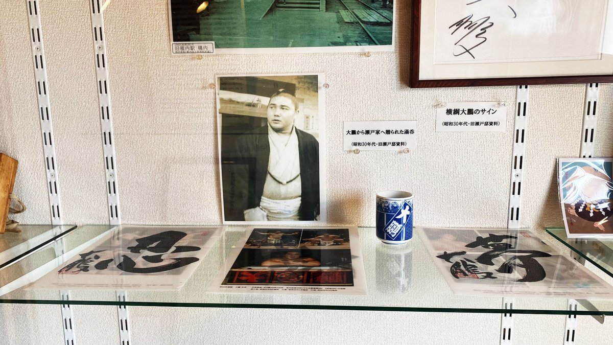 ①1975年頃の副港のにぎわい ②大鵬の訪問・贈られた湯飲み(1955年頃) 稚内では準本場所が開かれていた 大鵬は終戦の年、小樽まで乗船予定でサハリンから③船で引きあげ。が、母親の体調悪く稚内で下船。船はその後留萌(小平)沖でソ連の潜水艦の魚雷で沈没 ④『北の桜守』出演者の訪問、宿泊 pic.x.com/oaPneIRtHr