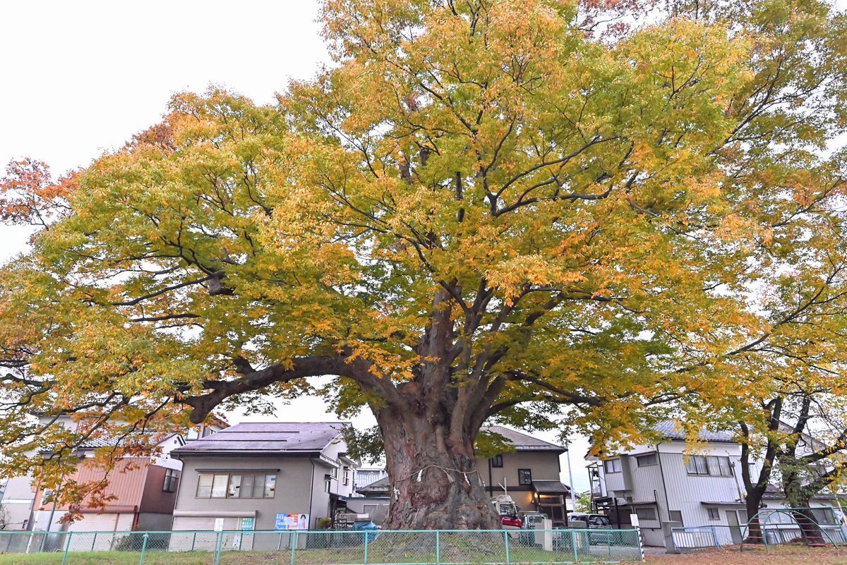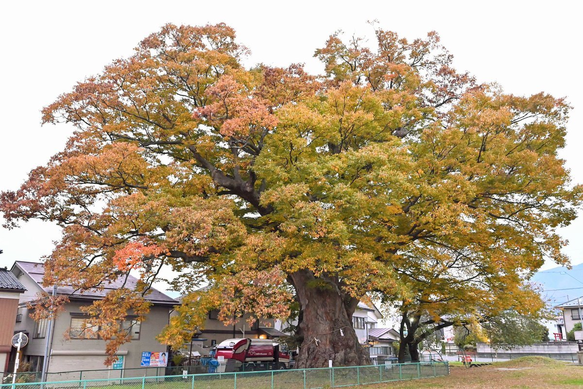 木ノ下のケヤキ □長野県箕輪町中箕輪 □幹周13.3m □県指定天然記念物 2025/11/8撮影 大きな樹冠は健在。今回初めて、色付いた姿を見ることができた。 枝ごとに色付きはまちまちで、赤く染まった葉の多い枝もあれば、緑が強い枝もあった。 これだけの葉が全て色付いたなら、さぞ見事だろう。 pic.x.com/oaXTkrsr35