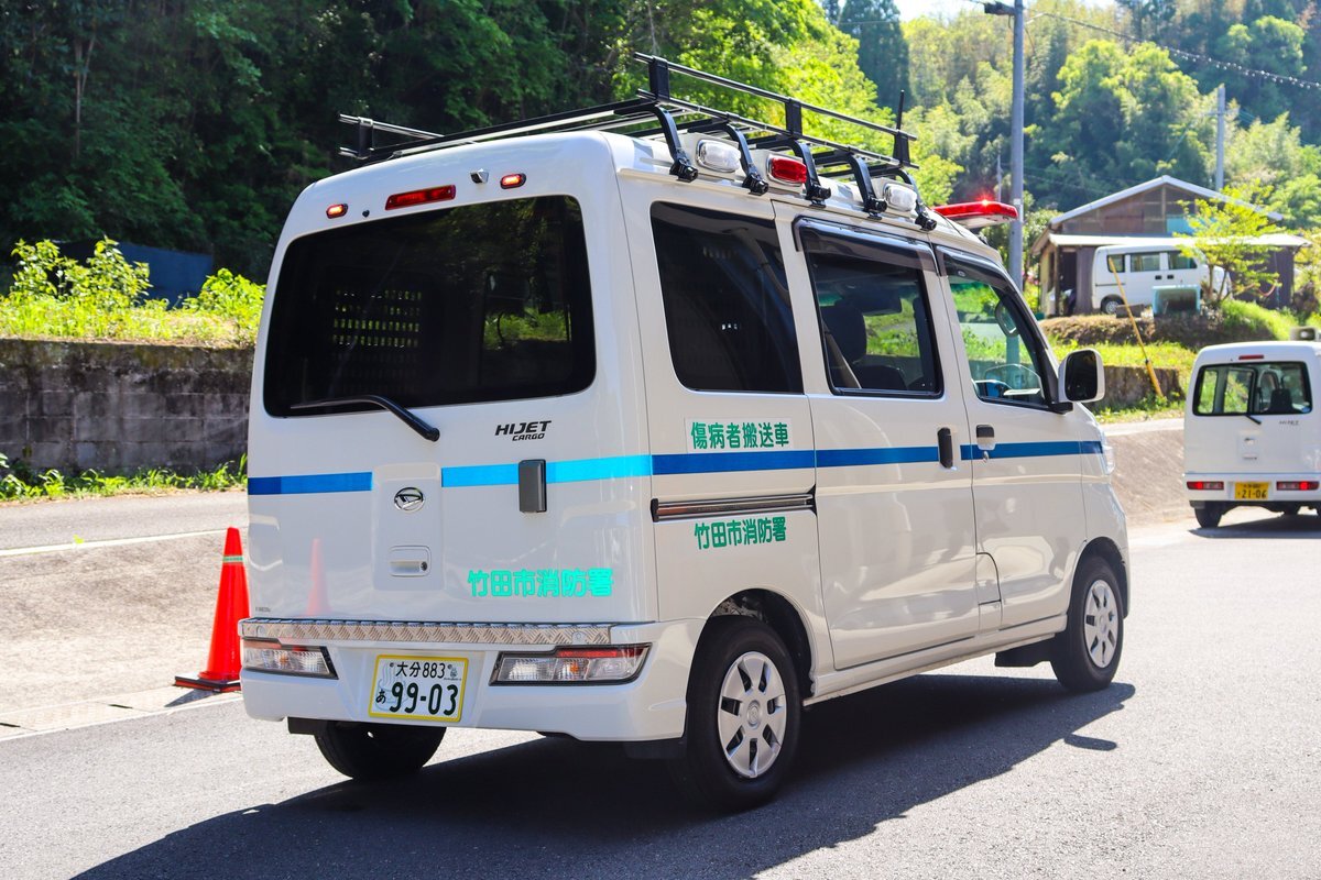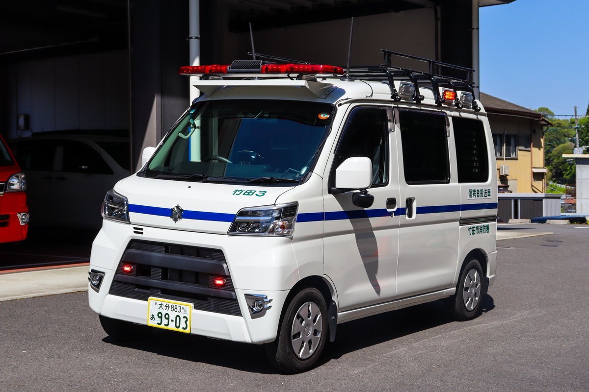 竹田市消防本部 竹田市消防署 軽救急車"竹消救急3" 令和4年配備の軽救急車で 艤装は消防防災となっています。 大分県で初導入となった個体で ご当地ナンバーを装着しています。 臼杵と同様にルーフキャリアを装備。 高規格救急と区別する為に青帯を採用。 pic.x.com/4ApcF7LXmb