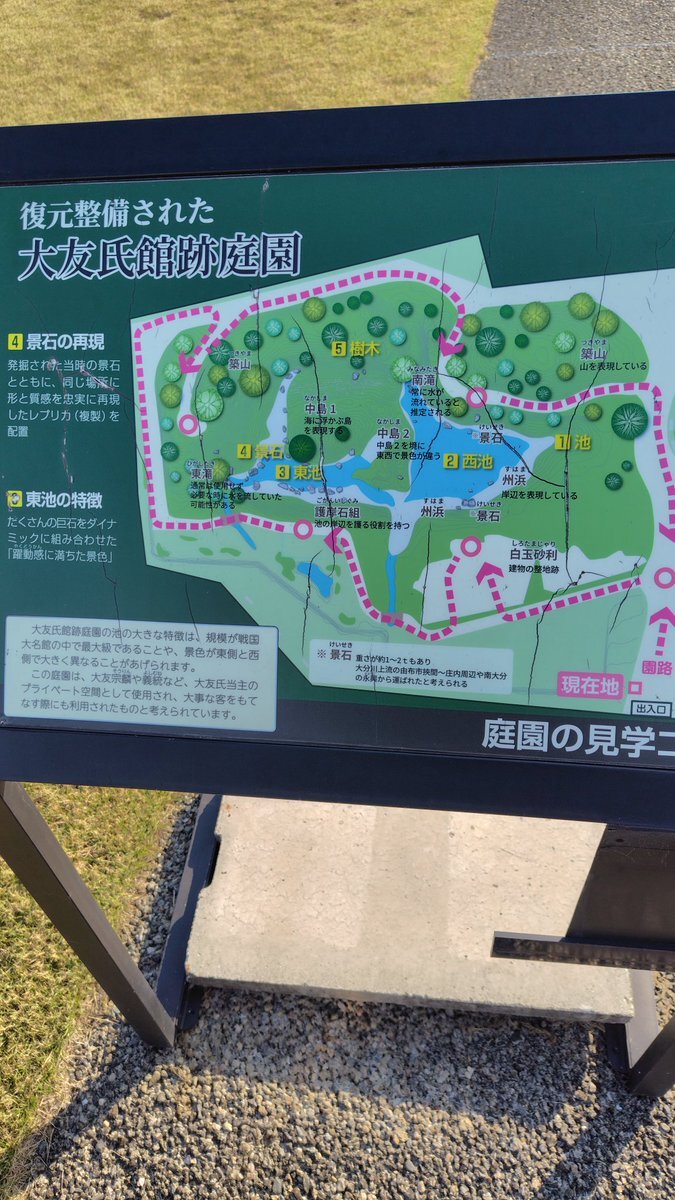 【大友氏館跡&庭園跡】 大友宗麟が臼杵城に移るまでの居館跡。 国史跡に指定され復元整備されてます。将来は立派な歴史公園施設になるのでは? 当日、時折凄い強風が吹いてました。 見学後、中津へ向けて立ち去った後に佐賀関で大規模火災が発生した。 いやはや… pic.x.com/4TCHOcSIRb