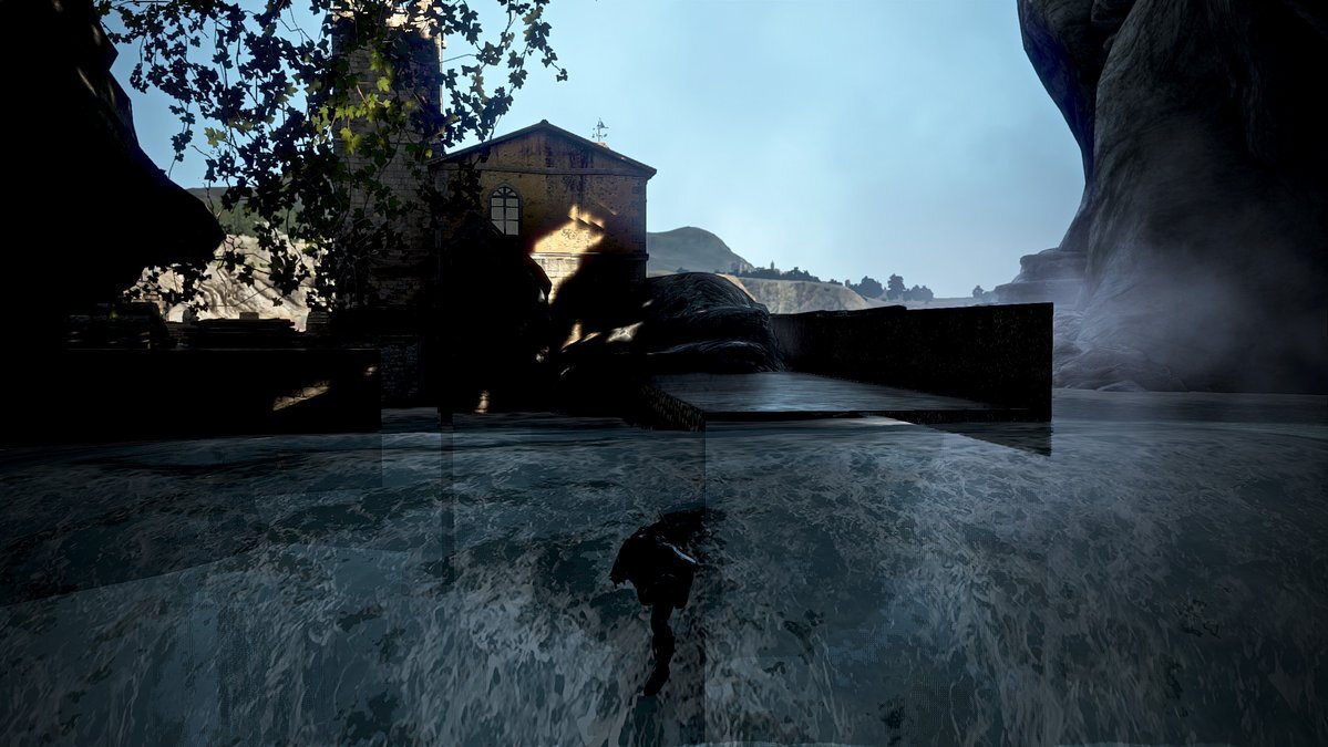 ターキーと戦ってたらいきなり水中にドボン! まさかこれは巨大な地底湖? 陸地に上がれそうなところを探して泳ぎ進めると建物発見! ひとまず助かった。 でも陸地に上がれても謎の力で進めず。なるほど、あれは地底湖じゃなくて……バリアに包まれた地底湖だったんだ! #黒い砂漠 #黒い砂漠PC pic.x.com/g4wIehG5dz