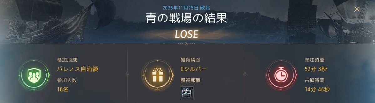 青の戦場 バレノス 16団体。手近なところを抑えて参加賞。あとは傍若無人に暴れまわって、敵ガレーを標的に。結果的には勝てなかったものの、楽しい一戦だった。次回参加はいつになるか未定だが、ガレーの強さが頭一つ抜けている。 #黒い砂漠 #黒い砂漠PC pic.x.com/OIES0jNGta x.com/rokaru_D/statu…
