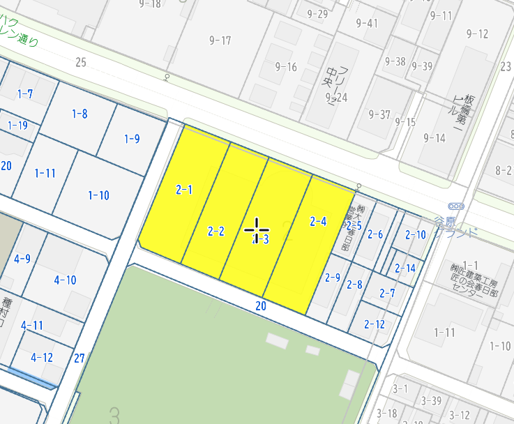(続き) 角地になる2-1,2-2は合計で面積1404m2 こちらは店舗用地やマンション用地としても売却できそう。 2-3,2-4は合計で面積1468.12m2 A氏は個人だが地元不動産会社Mの元代表の方 #地目変更(#農転)もあったし、A氏の個人所有をその会社が仲介して住宅用地として販売かな。 #春日部 pic.x.com/Eg4tKqRgKB