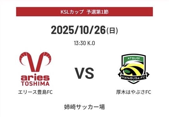 ♈𝙉𝙀𝙓𝙏 𝙈𝘼𝙏𝘾𝙃 ♈ 🏆第18回KSL市原ATHLETAカップ グループリーグ第1節 🆚厚木はやぶさFC ⏰ 10/26(日)13:30 K.O. 📍 姉崎サッカー場 市原カップ開幕戦! チーム一丸となり、初戦に挑みます🔥 熱いご声援よろしくお願いいたします! 🔗 aries-toshima.com/news/zAhd3O0D #エリース豊島FC #豊島区 pic.x.com/pMe5Ry3x0g