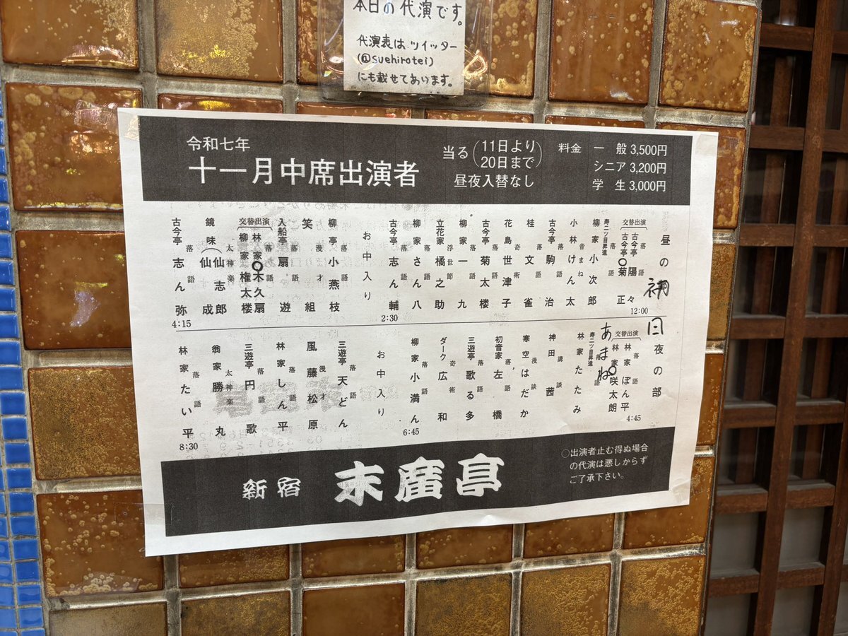 映画を観た後は新宿末廣亭で寄席を見ました。初、末廣亭でした。林家しん平さんのビールの喉越しの話で腹抱えて笑い、トリの林家たい平さんの古典落語・幾代餅(いくよもち)の世界観に引き込まれました。 落語っていいなぁ、と思います。 pic.x.com/snpQYsSnvn