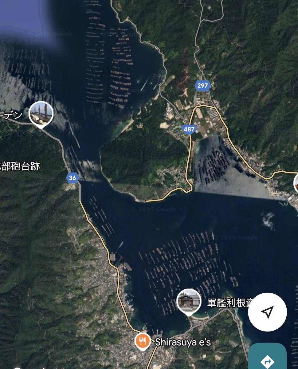 ふと、江田島ぶらり旅をしてて驚きの光景。このカキ筏の中を通って3000トン級の護衛艦が湾内に入るのはスゲーよ。海上自衛隊幹部候補生学校に入ると、漏れなくここを泳がさせるぞ。 pic.x.com/EOpADReZNp