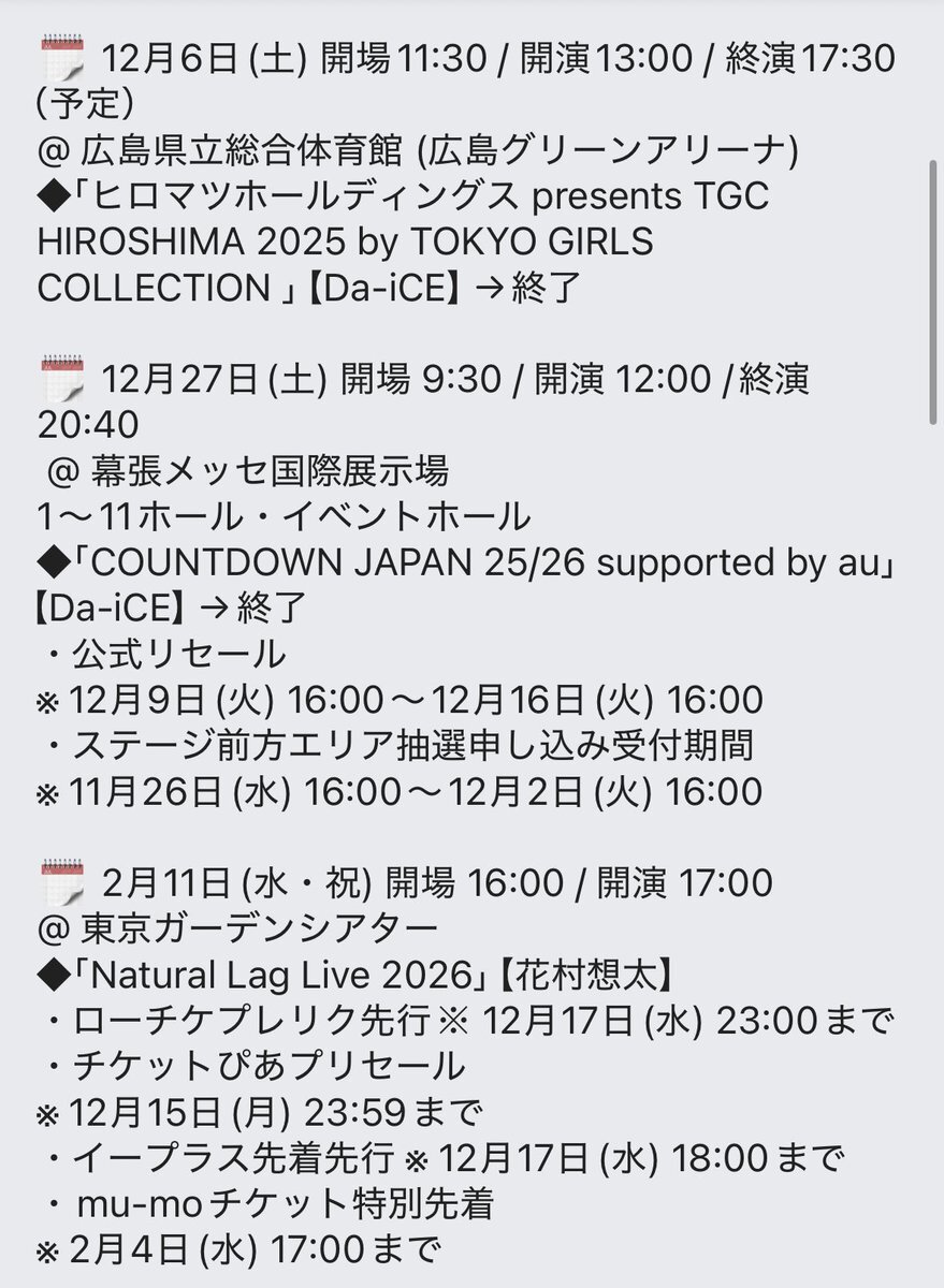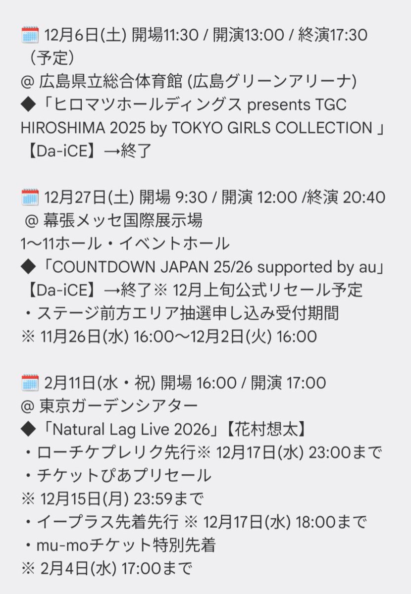 【11/23(日) Da-iCEライブ・チケット情報】 🎫「#Natural_Lag Live 2026」 @ 東京ガーデンシアター #花村想太 プレイガイド先行受付中! x.com/Natural_Lag/st… #Da_iCE #工藤大輝 #岩岡徹 #大野雄大 #和田颯 #TastyBeatingSound #ノンフィクションズ #Monster #TERMiNaL pic.x.com/AVHihkv9Ki