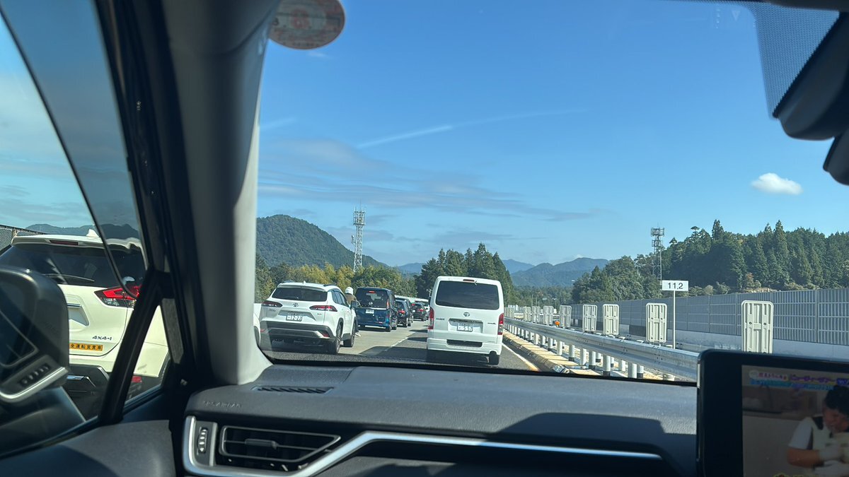中国自動車道の久地PA付近で渋滞、まーーーーったく動かんのやけど何? 何待ち? 急いでるんやけどー!😡😡💢
