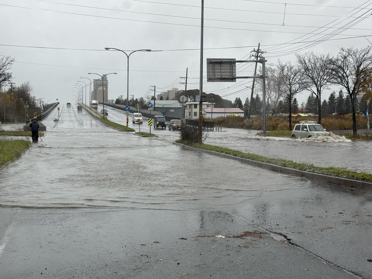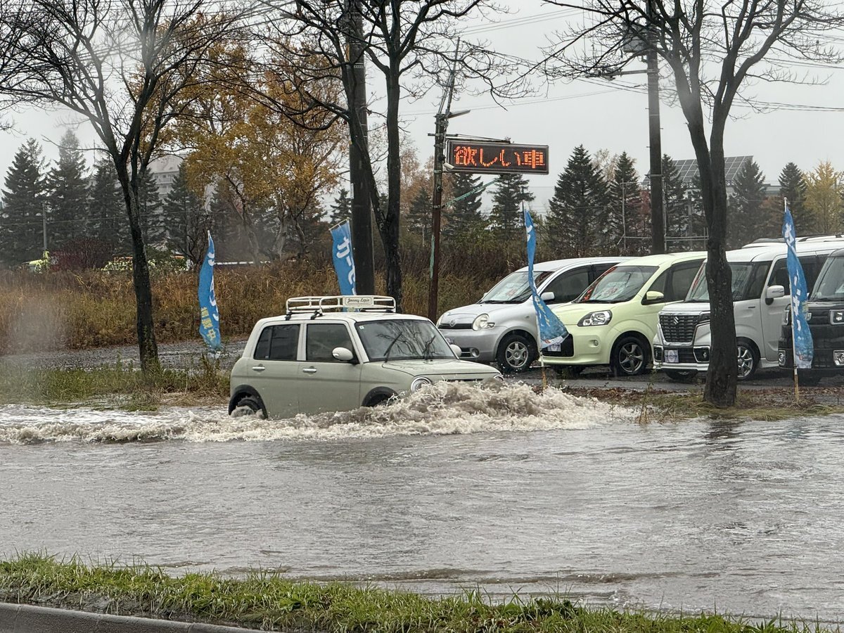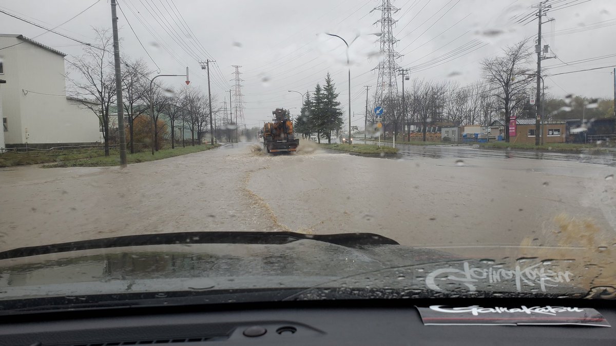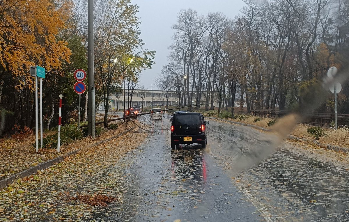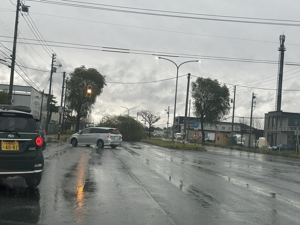 強風につき右側の敷地にあったカラーコーンが道路渡って左に移動した あと 雨の波は綺麗ね~ 木がめっちゃ曲がったりしてるから倒木しないように~と 停電しない事願うばかり~ 早く去れ~っ🌀🌀 #北海道 pic.x.com/nIHwoz8o4Z x.com/isoe0815/statu…