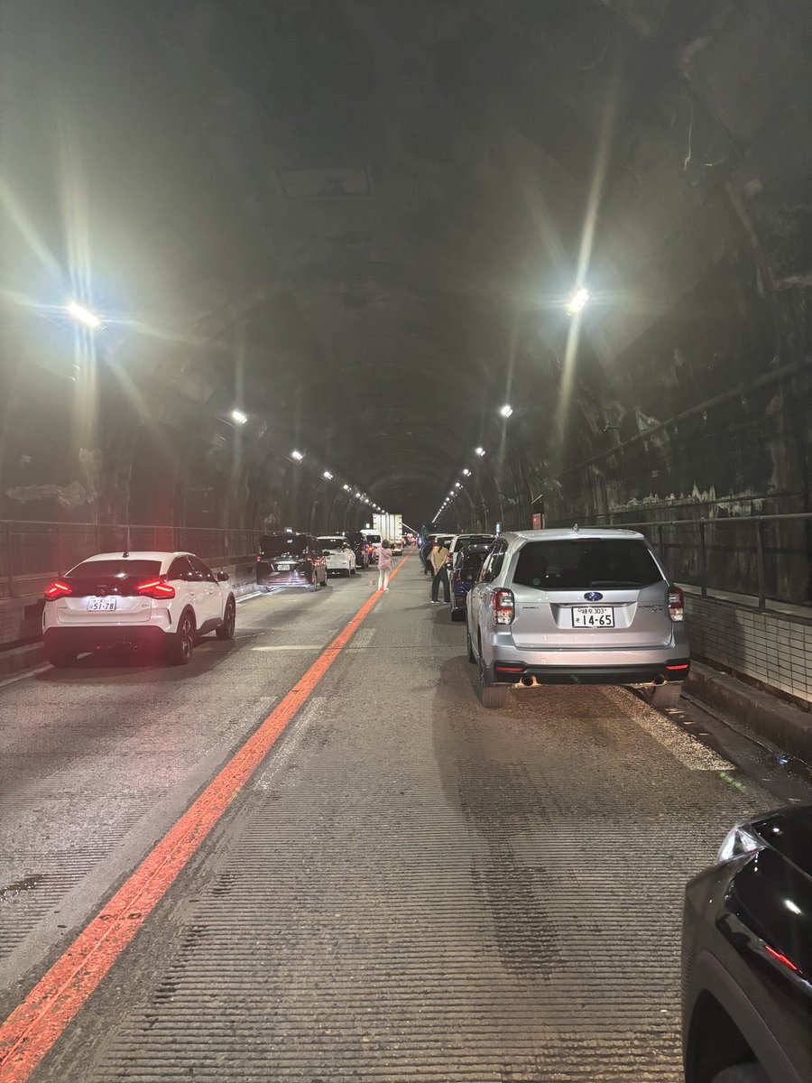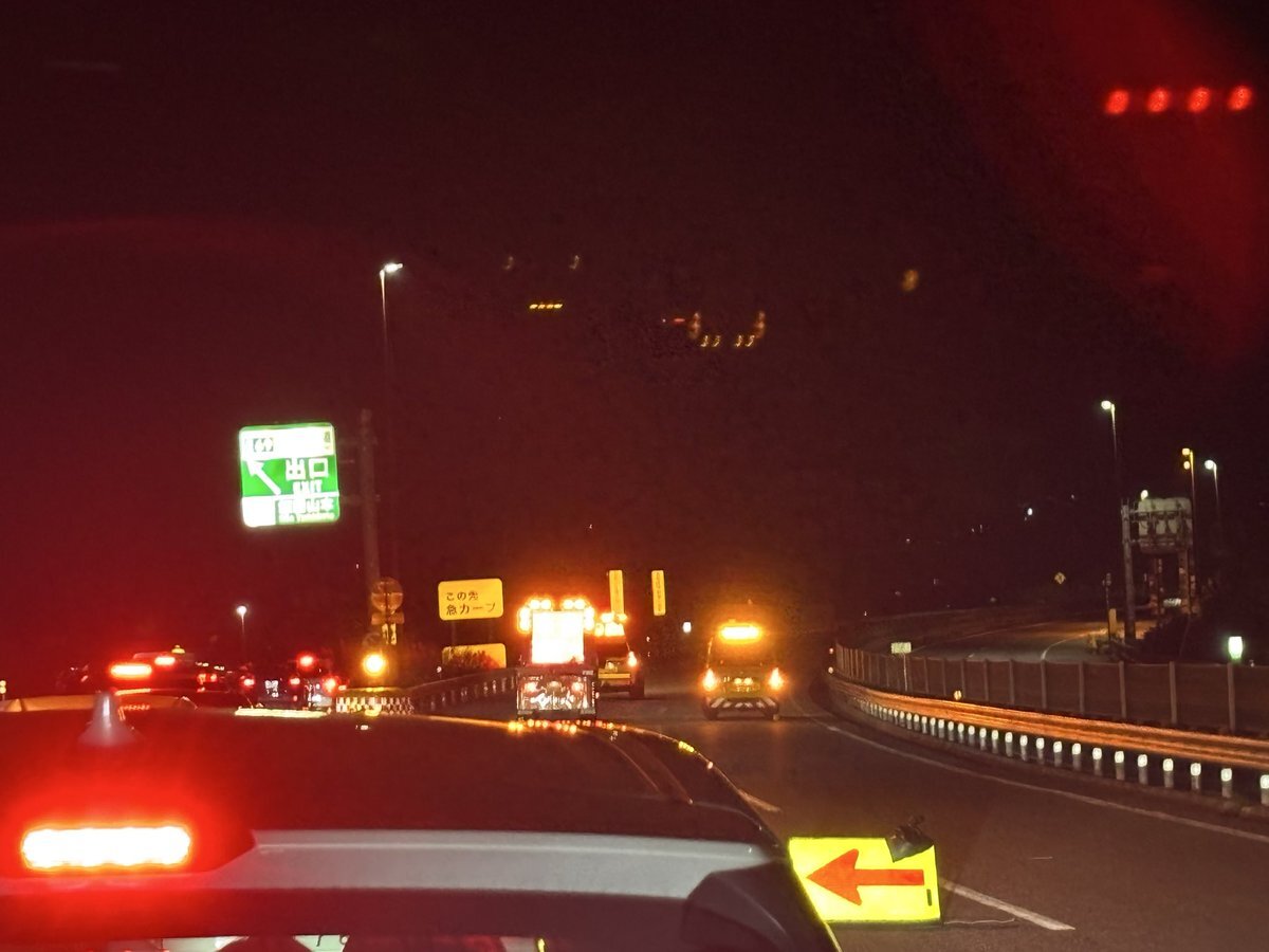 通行止めで止められてから2時間半、ようやく抜けられた! ちなみに事故現場には横たわったバイクが一台 走りながらだったので横にブレてしまったけどこんな感じだった。 pic.x.com/gysNsR5aQQ