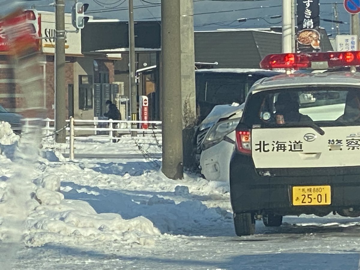 曙通 電柱に車が突っ込む事故 凍結の影響 札幌市手稲区 曙6-3交差点