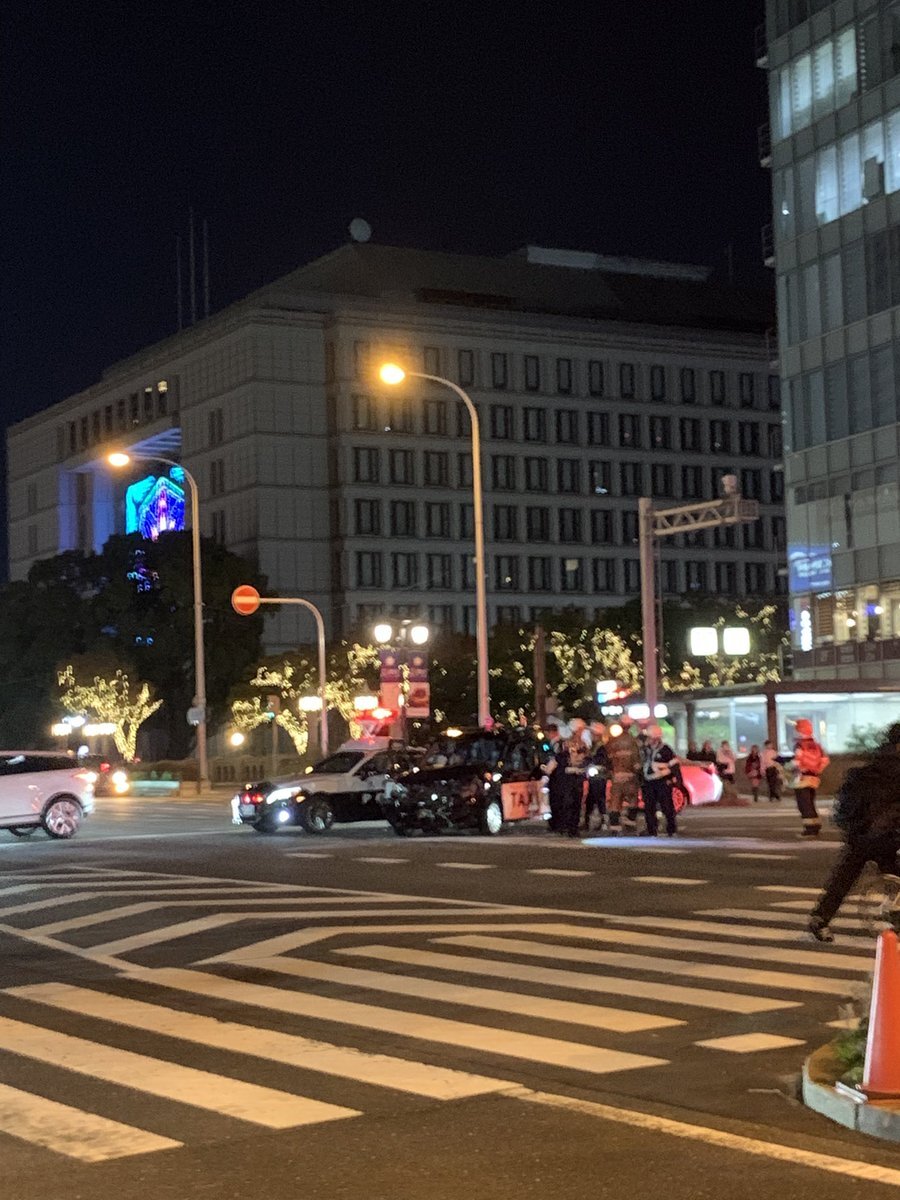 御堂筋の淀屋橋交差点で事故があって、事故車両が両方ともバキバキでエグいww ありゃ〜下手すりゃお陀仏かも知れんな…