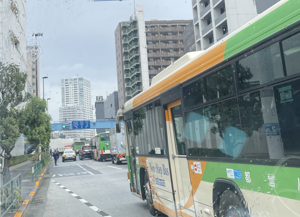品川区東品川一丁目で都営バスとトラックの接触事故発生 バス側は窓ガラスの一部が割れる 乗客だけど正直どっちもどっちな感じだった バス→ほぼ直進、ちょっと運転荒い トラック→交差点危険な位置で停止 #交通事故 #事故 pic.x.com/zBu68RT3mT