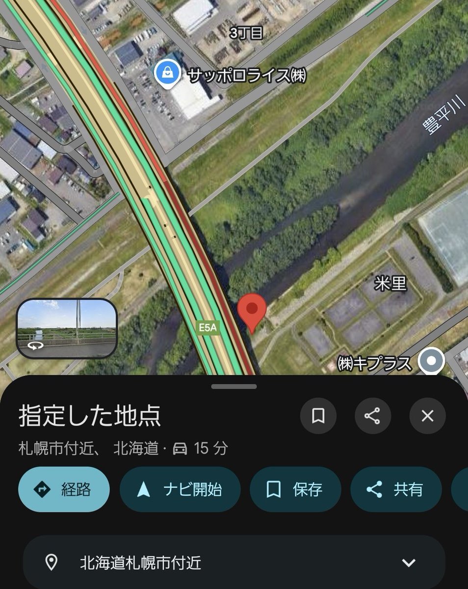 国道274号 渋滞 車の事故との情報 札幌市白石区米里2条1丁目1-1付近 豊水大橋付近