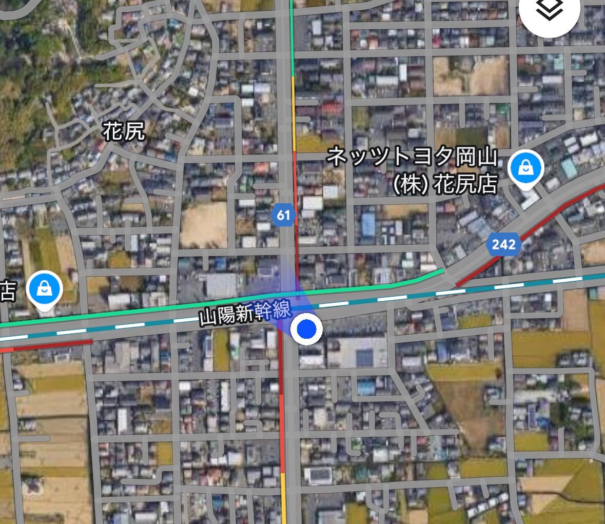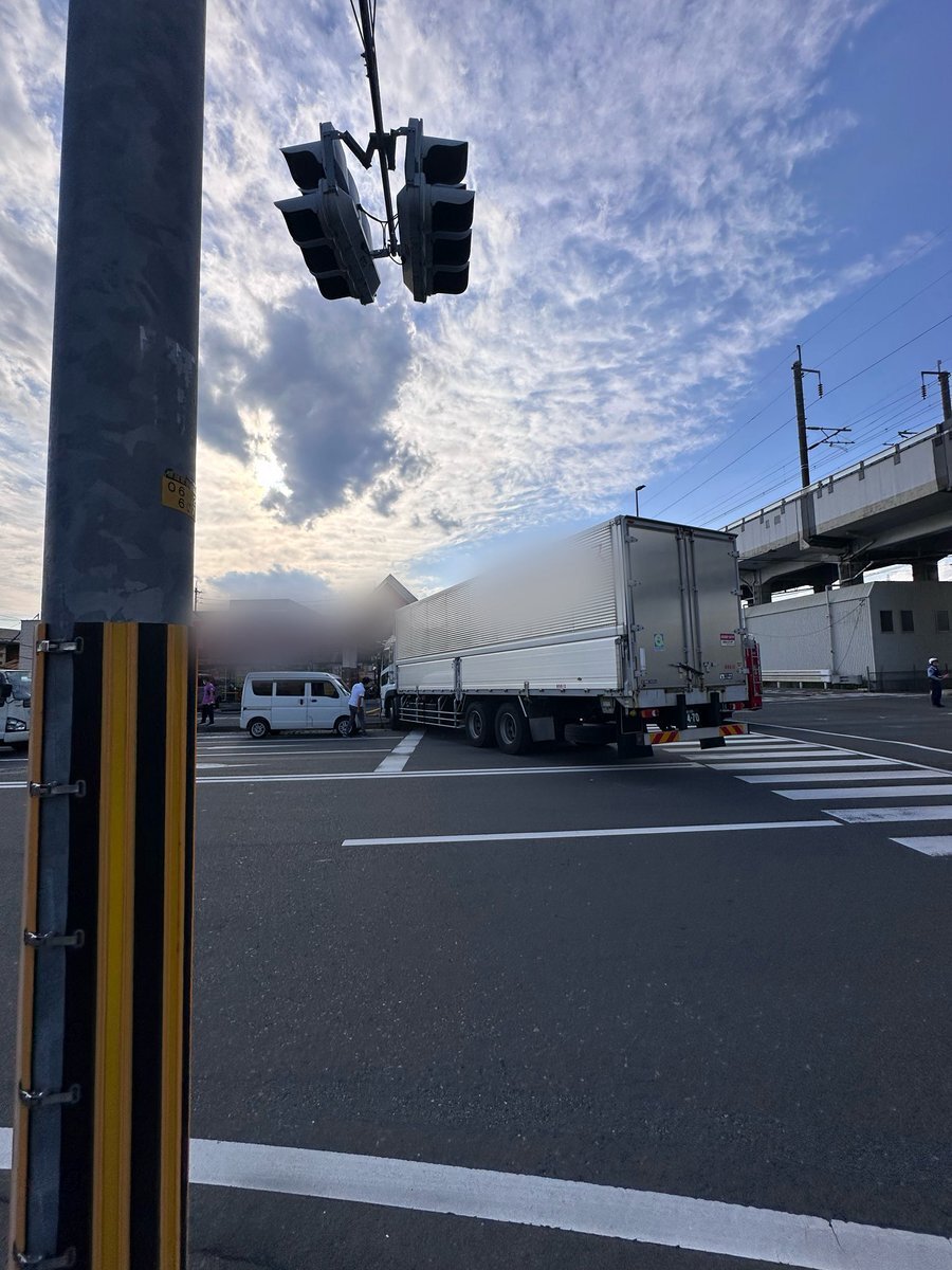 県道61号 渋滞 電柱にトラックが突っ込む事故 岡山市北区白石西新町6-107