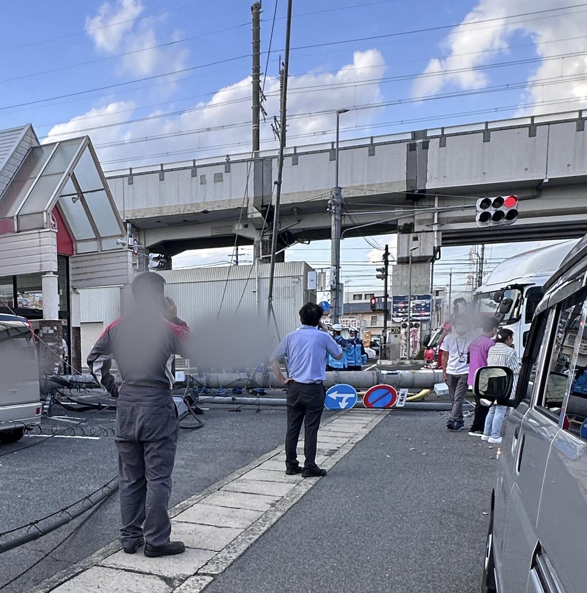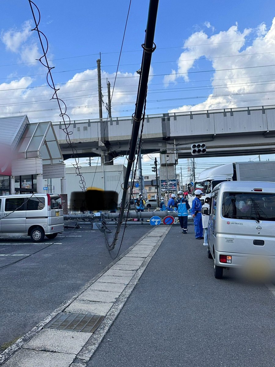 岡山の天柱をなぎ倒す事故。 車の通行規制はないですが 歩行者のスペースが制限してます。 どうか安全運転で🙇 pic.x.com/lNWlqER5fw x.com/spitubeokayama…