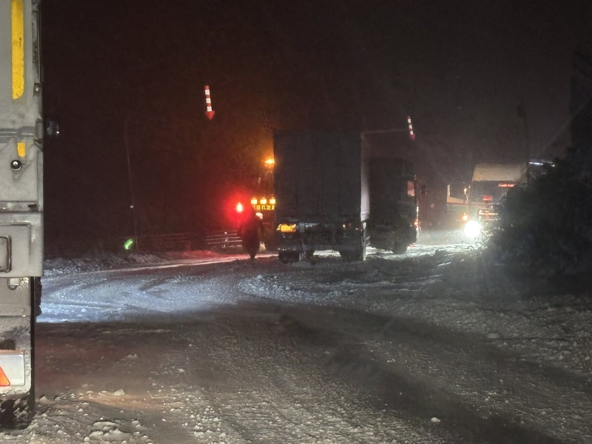 日勝峠、トレーラーがジャックして通行止めです エアタンクも逝ったらしく自力移動も不可みたいです 来ないorUターンした方がいいと思います 場所は清水側の8か9合辺りです pic.x.com/Si7B76n3bA