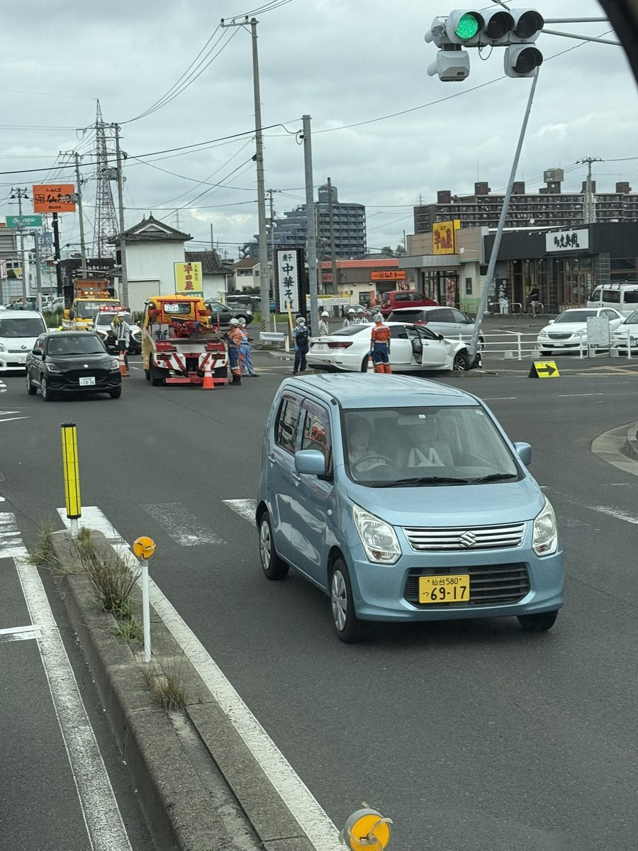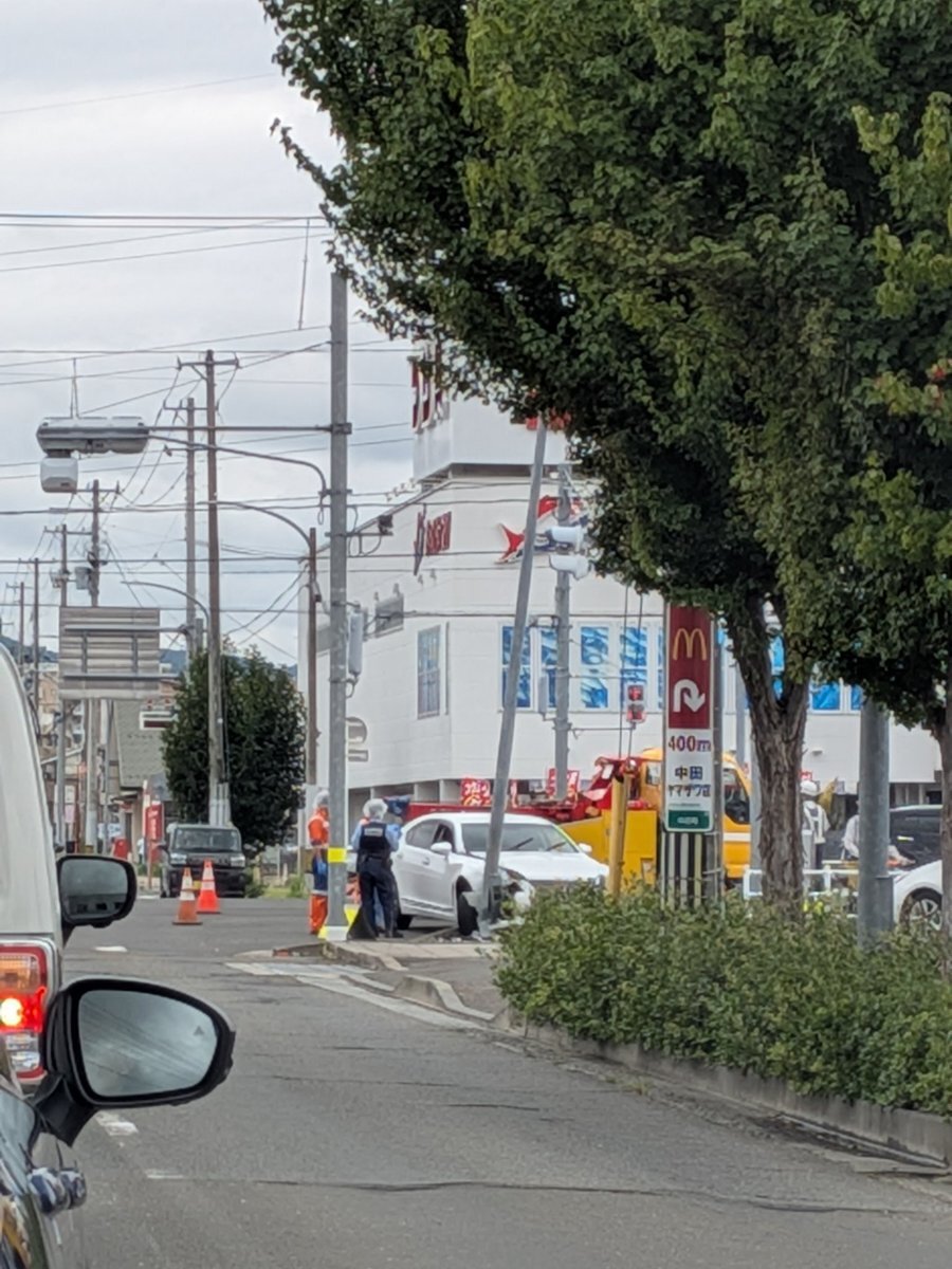 国道4号 渋滞 街灯に車が突っ込む事故 仙台市太白区東中田6丁目4-3