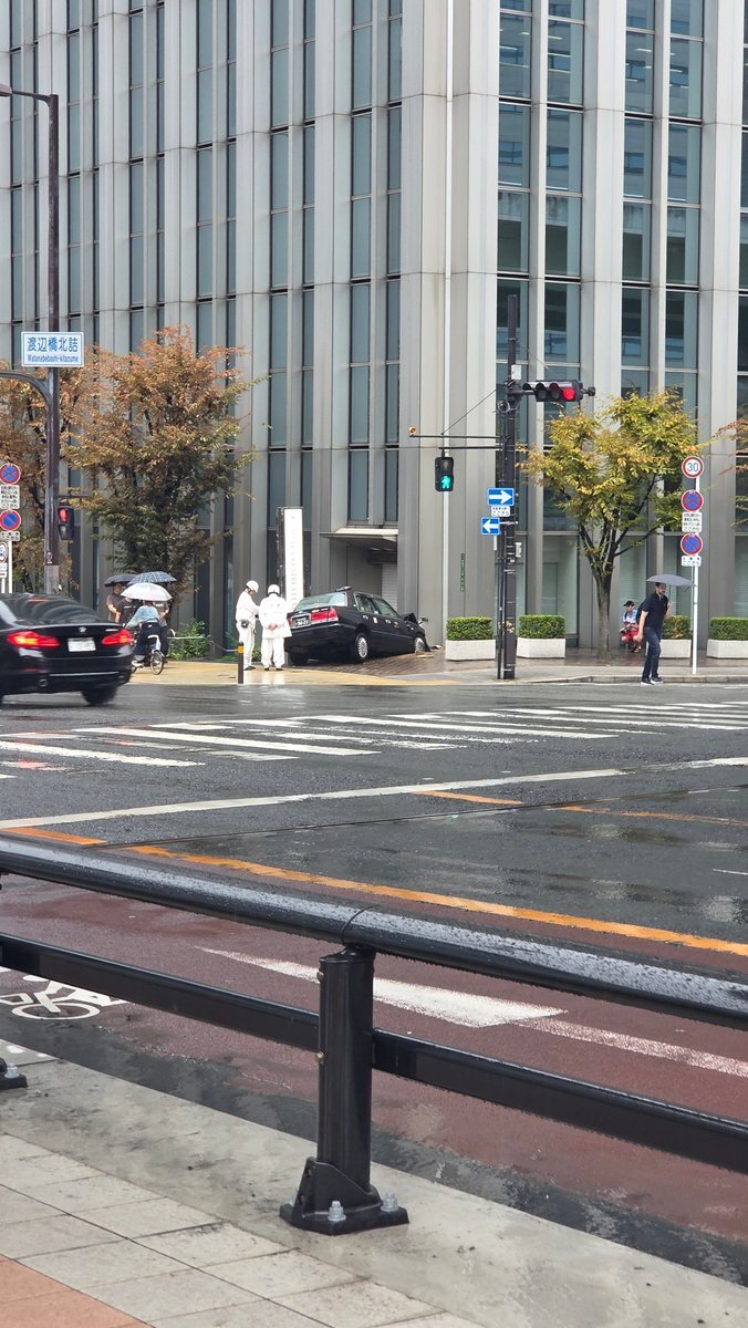 大阪市道南北線 ビルにタクシーが突っ込む事故 複数人が負傷 大阪市北区堂島浜1丁目4-16 堂島ビル ※撮影は日中